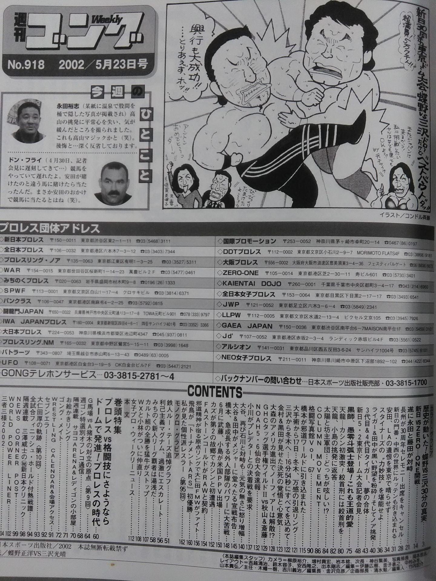 2002 I want to see Misawa's fighting spirit Noah! Final match / Chono Declaration! Whether it's Noah or ZERO-ONE, I'll go / Cover: Masahiro Chono vs Mitsuharu Misawa