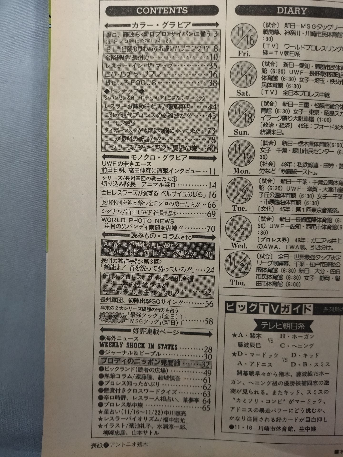 1984 Exclusive press conference with A. Inoki "Even if you are alone, the New Japan pro is immortal" / ◯ Pin-up (Adrien Admus & Dick Murdoch, Stan Hansen & Bruiser Brody ) Cover: Antonio Inoki