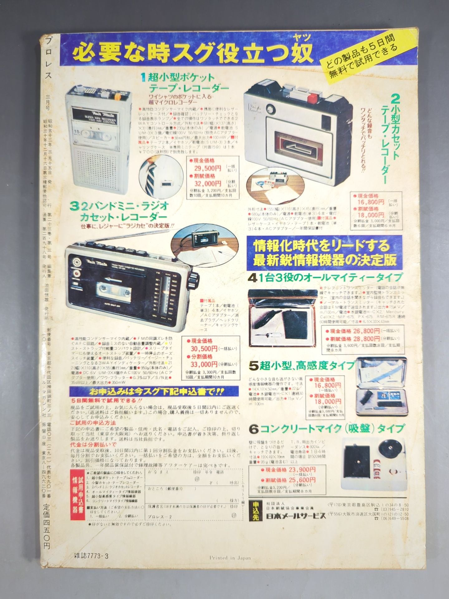 1977 The Constitution of the Partial Pro Wrestling World New Japan Pro Wrestling 2.10 Budokan Battle Bulletin / [Appendix] ◯ Pin-Up (Bill Robinson) Cover: Mil Mascaras