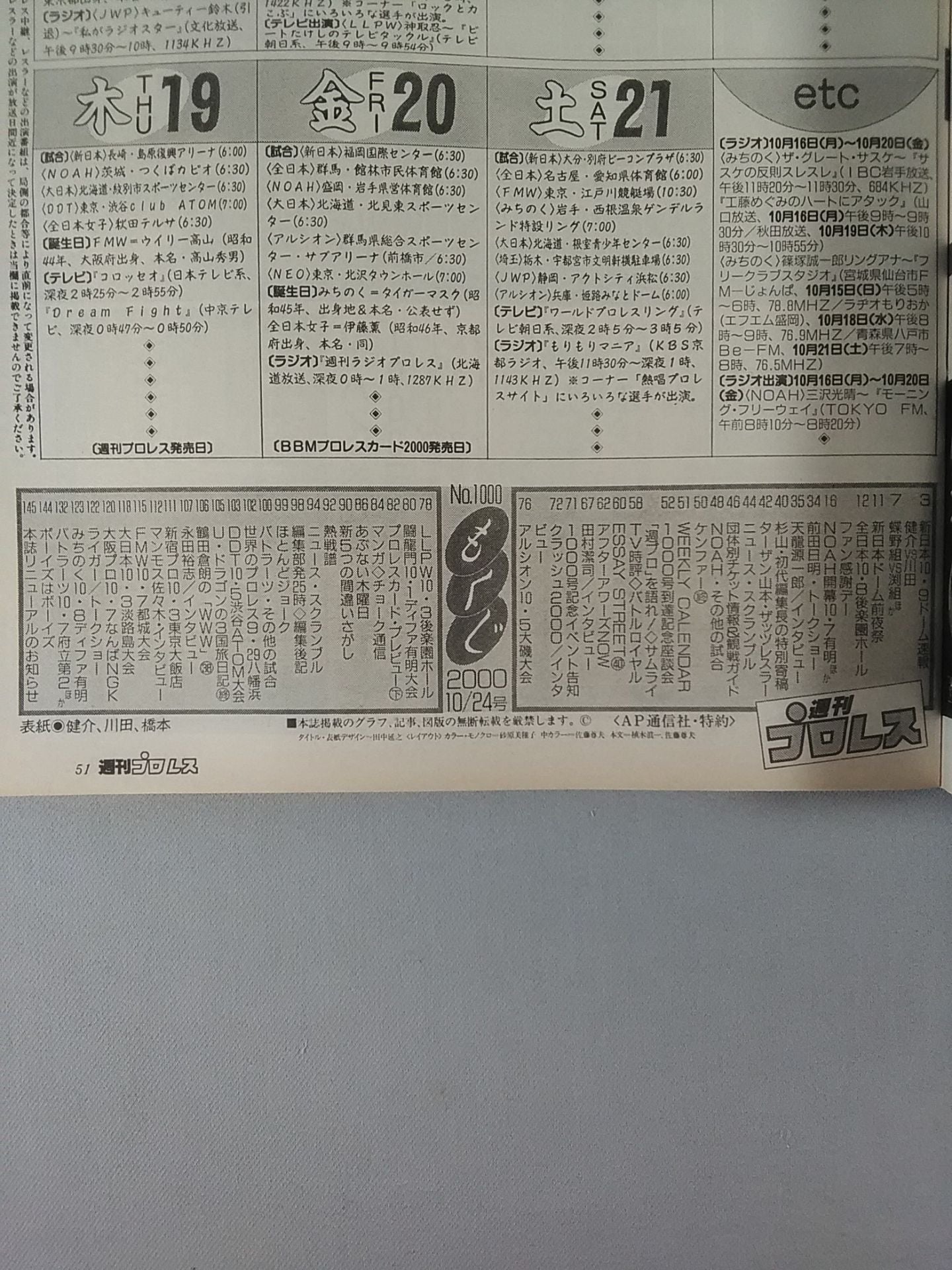 2000 Thanks to you, No. 1000 ~ Ru! / Kawada wins! New Japan 10.09 Tokyo Dome Tournament Color Bulletin Cover: Kensuke Sasaki , Toshiaki Kawada, Shinya Hashimoto