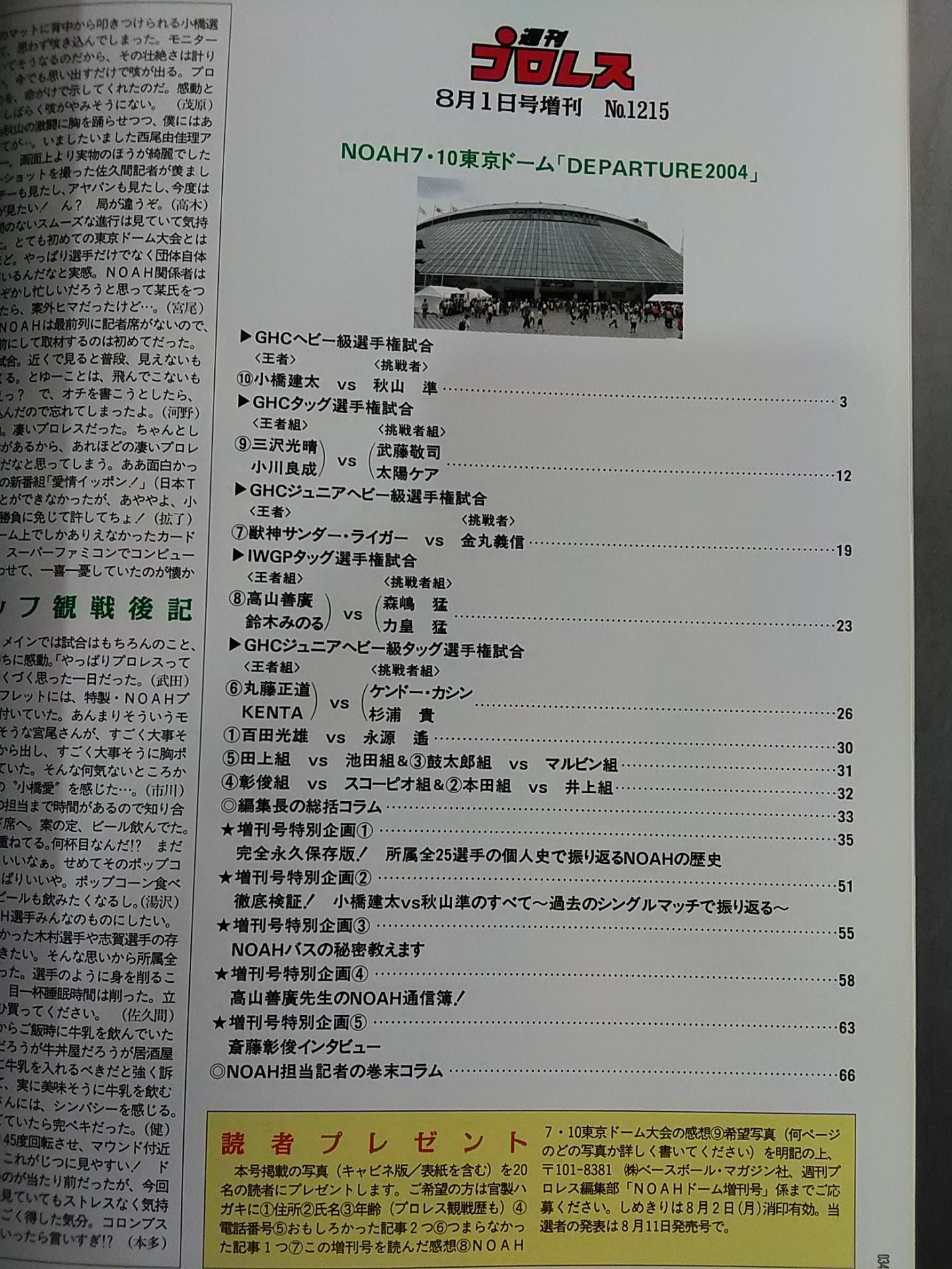 2004 NOAH7/10 Tokyo Dome First Advance Commemorative Detailed Report Kobashi, Akiyama, NOAH, It's the best! Cover: Kenta Kobashi, Jun Akiyama