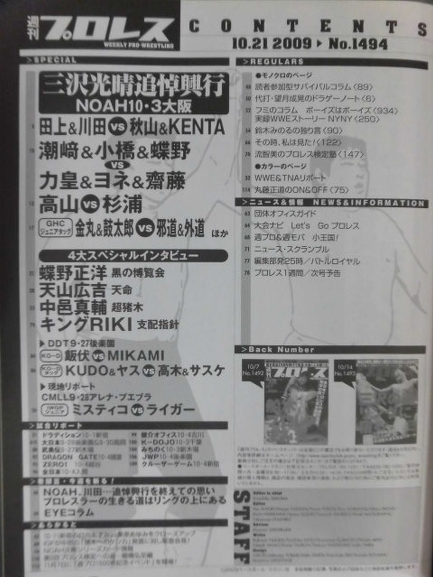 2009 Mitsuharu Misawa Memorial Box Office 10.3 Osaka Tournament / vs. Inoki, Direct hit on Shinsuke Nakamura ! Cover: Toshiaki Kawada, Akira Taue