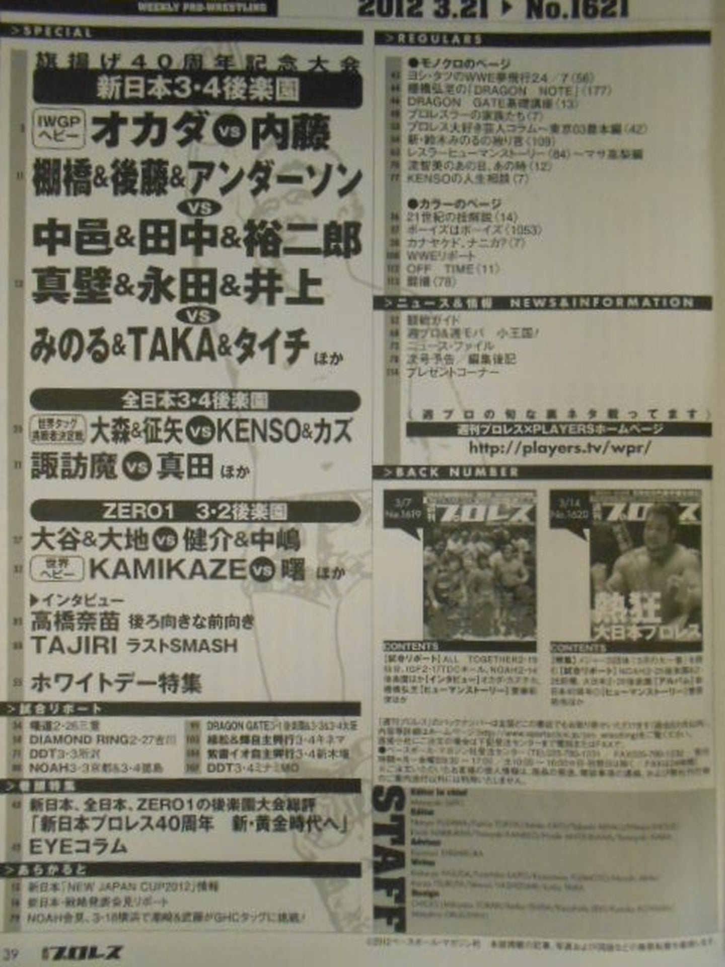 2012 New Japan Pro Wrestling 40th Anniversary Towards a New Golden Era Cover: Kazuchika Okada