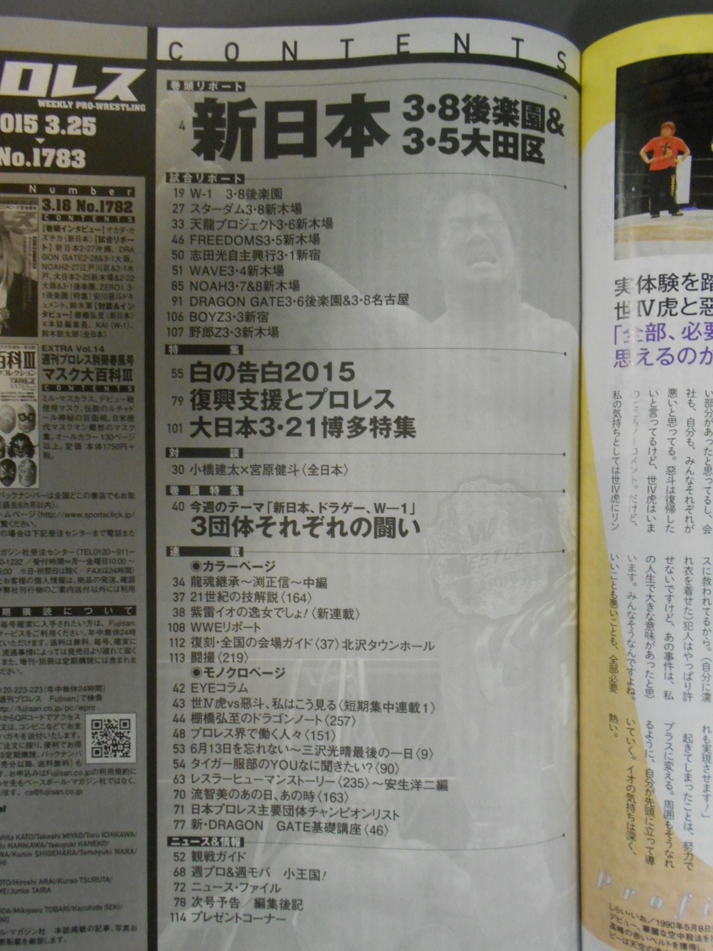 2015 Muto Crossing W-1 New Era "The responsibility of taking the belt from Mr. Muto is heavy" (KAI) / New Japan Cup Storm! Tanahashi, Okada defeated / [Emergency Series] IV Tora vs Toto, I see it this way (1) Chigusa Nagayo / Cover: KAI