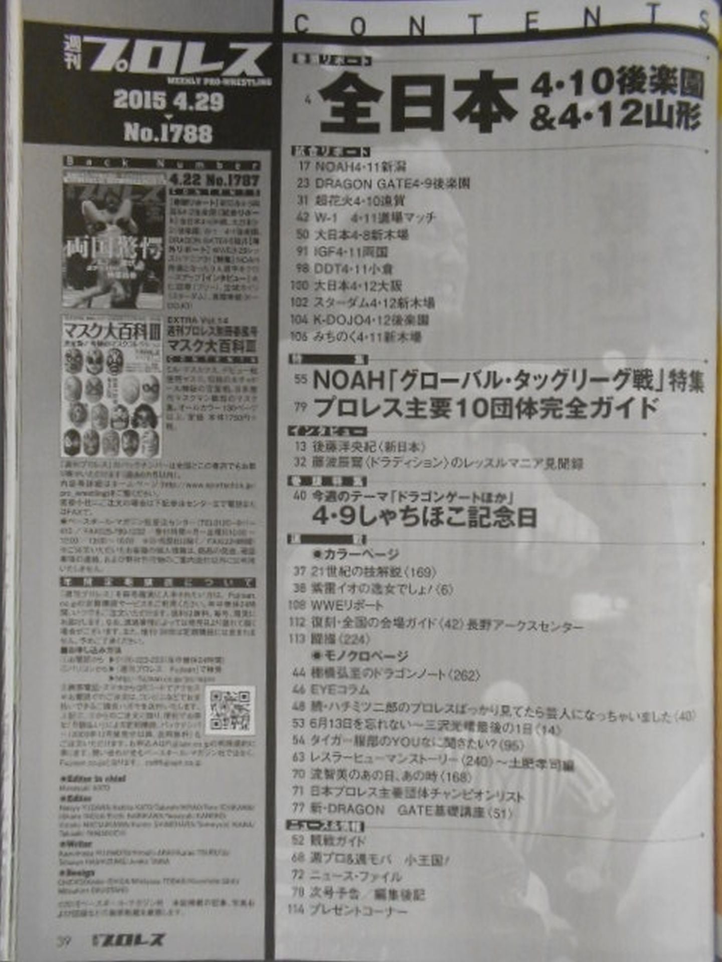 2015 Changing Drage, Bright Future / 4.9 Korakuen, Attention This Ichiban! T-Hawk vs Big R Shimizu / Kazuyuki Fujita provokes SUWAMA ! / Ark Haruran, Suzuki Army Title Fudo / Tatsumi Fujinami WrestleMania Memoirs / Major 10Complete promotion guide Cover: T-Hawk, Big R Shimizu