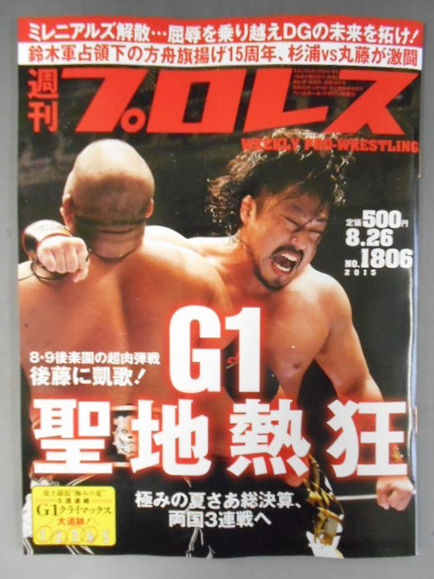 2015 G1 Holy Land Enthusiasm 8.9 Korakuen Gokuen Super Flesh Battle Goto ni Kaika! The ultimate summer is over, and Ryogoku is on its way to three consecutive matches / Millennials disbanded: Overcome humiliation and open up the future of DG! / 15th anniversary of the raising of the Ark flag under the occupation of the Suzuki army, Sugiura vs Marufuji fierce battle Cover: Hirooki Goto vs Tomohiro Ishii