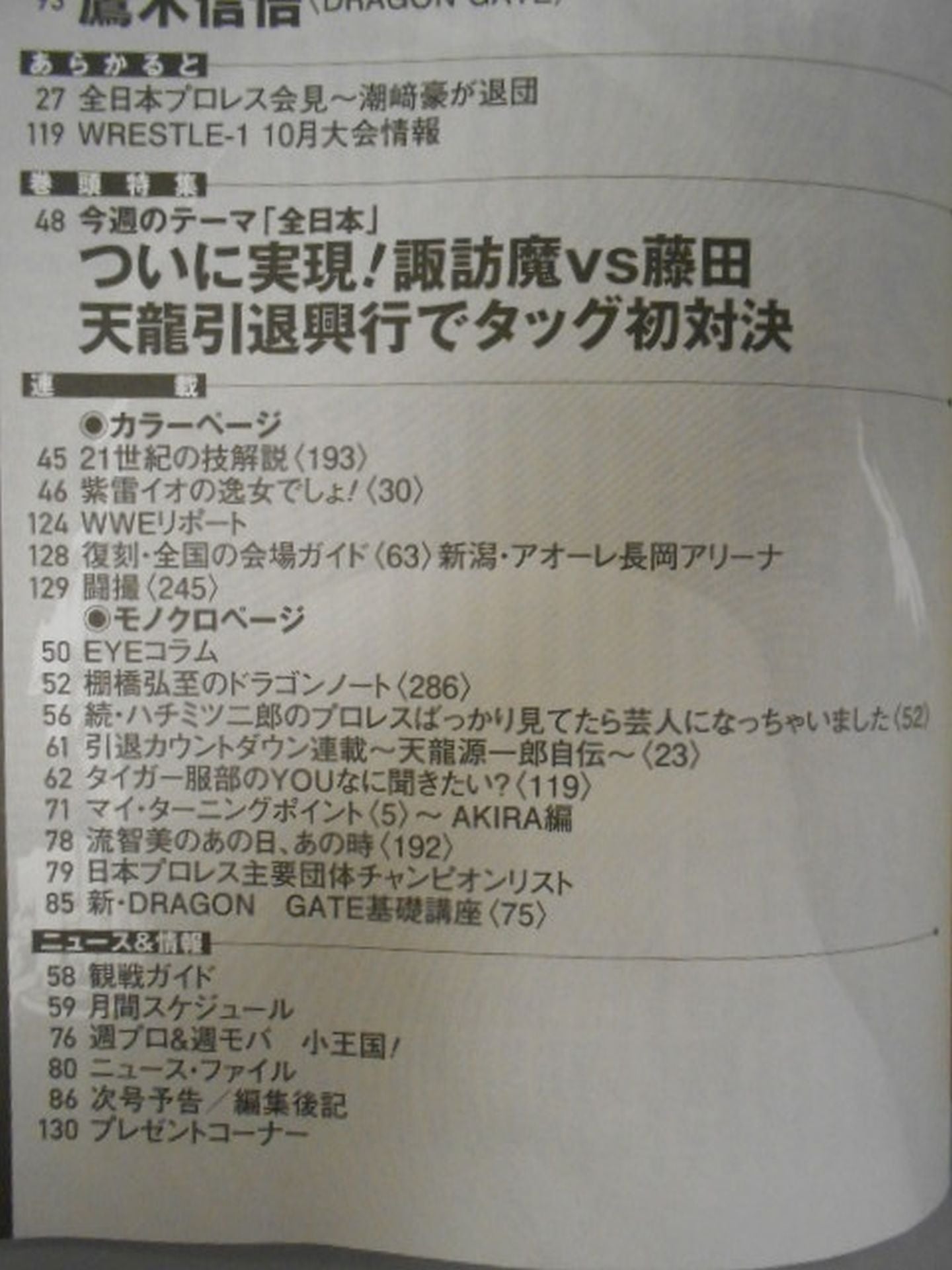 2015 Tranquillo Mystery "I'm going to bring my pareja (buddy) to Ryogoku, who is it? New Japan Pro Wrestling2 Big Matches 9.23 Okayama &9.27 Kobe University Special Feature / Why?! Shiozaki leaves all of Japan / The royal road tournament is Akiyama V / Finally realized! SUWAMA vs Fujita, first tag team match at Tenryu retirement box office Cover: Tetsuya Naito
