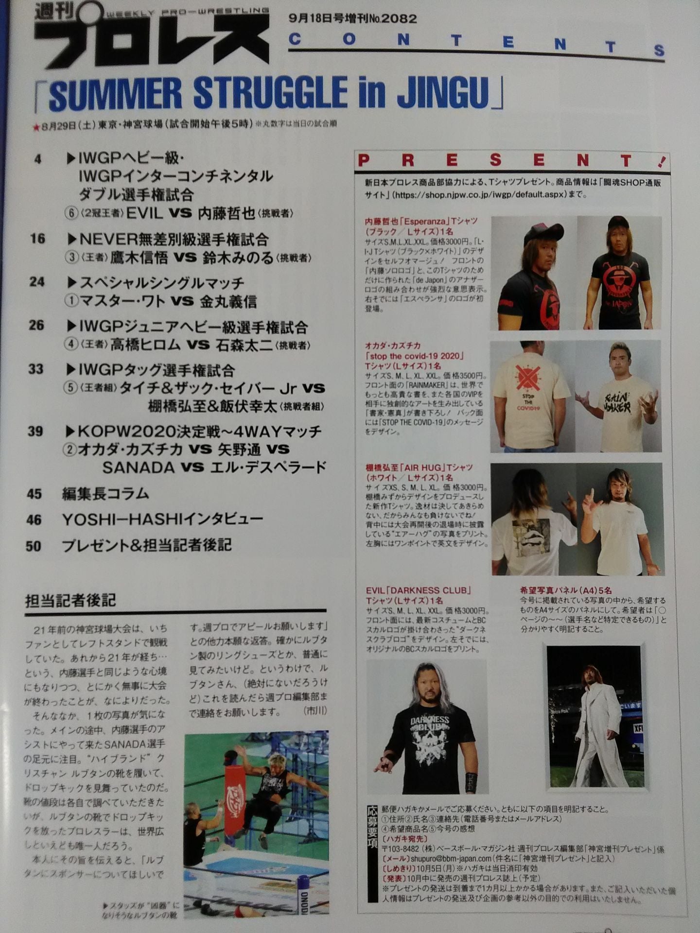 2020 New Japan Pro Wrestling August 29 Jingu Baseball Stadium "SUMMER STRUGGLE in JINGU" detailed report issue Tetsuya Naito, Regaining the IWGP Heavyweight and IWGP Intercontinental Double Crown Titles in the Jingu Finals for the first time in 21 years Cover: Tetsuya Naito
