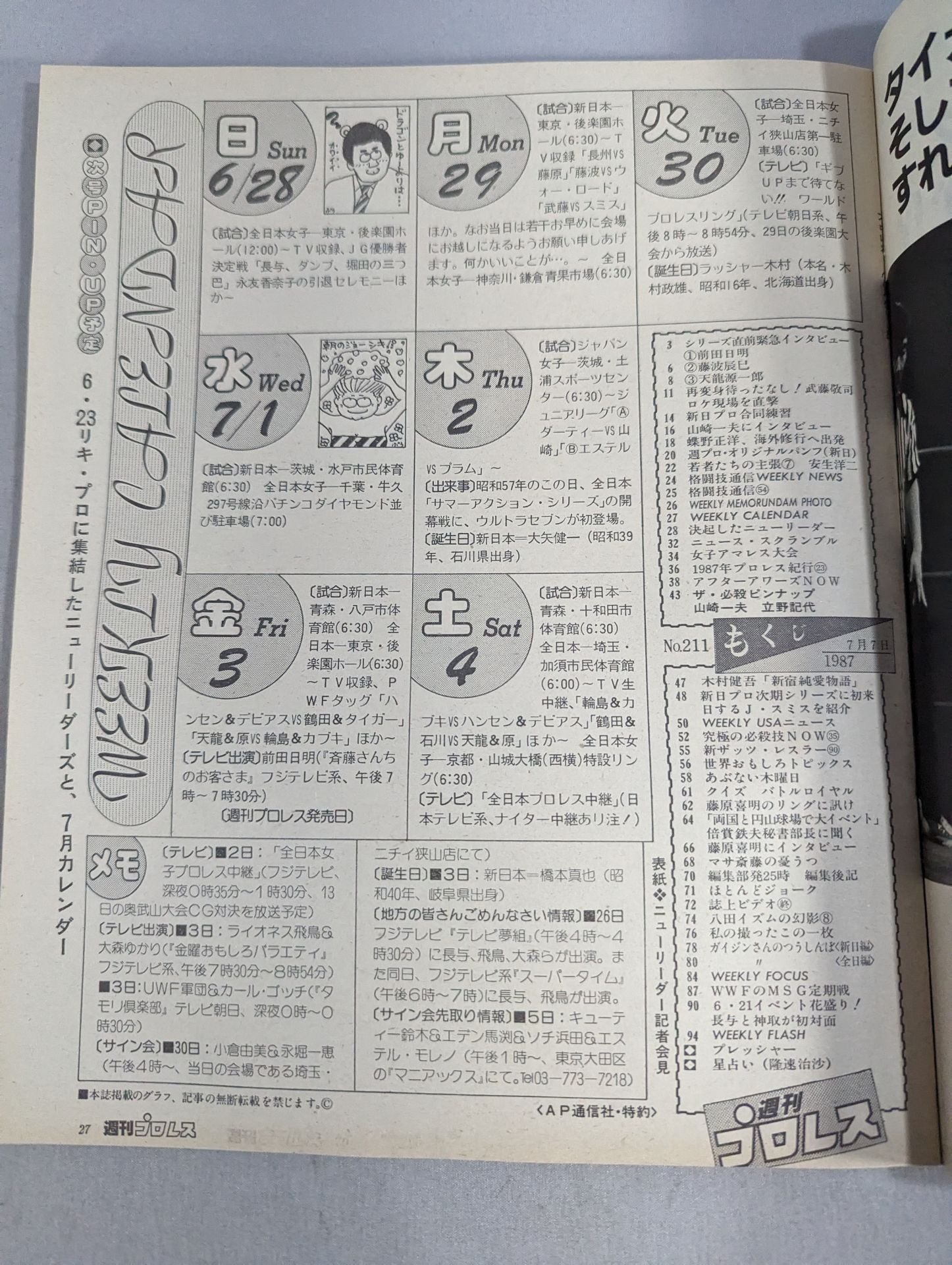 1987 Successful escape from depression / ○ Pin-up (Kazuo Yamazaki, Noriyo Tateno ) Cover: Tatsumi Fujinami , Riki Choshu , Kengo Kimura, Akira Maeda