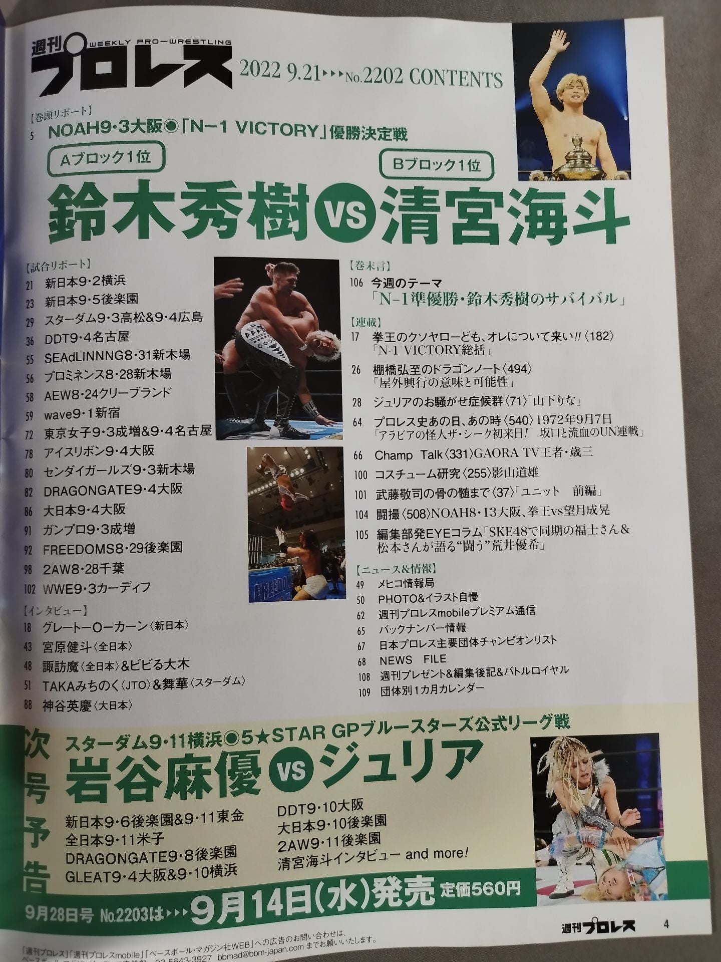2022 Kaito Kiyomiya will move forward!! / NOAH9・3 Osaka Big Match Detailed Report / 【Match Report】Stardom 9・3 Takamatsu &9・4 Hiroshima, etc. / 【Interview】Great O Khan ( New Japan Pro Wrestling ) and other covers: Kaito Kiyomiya