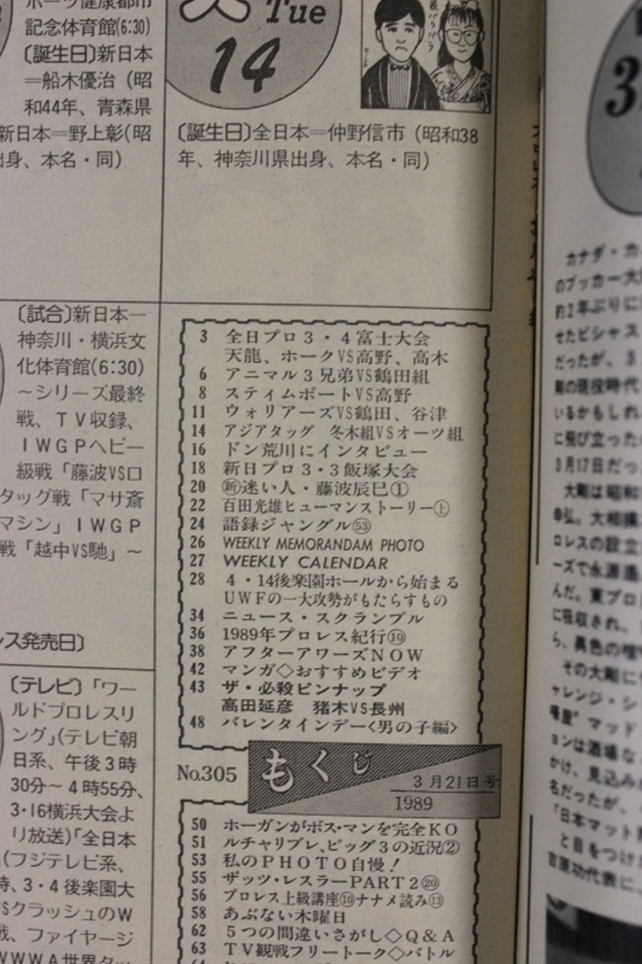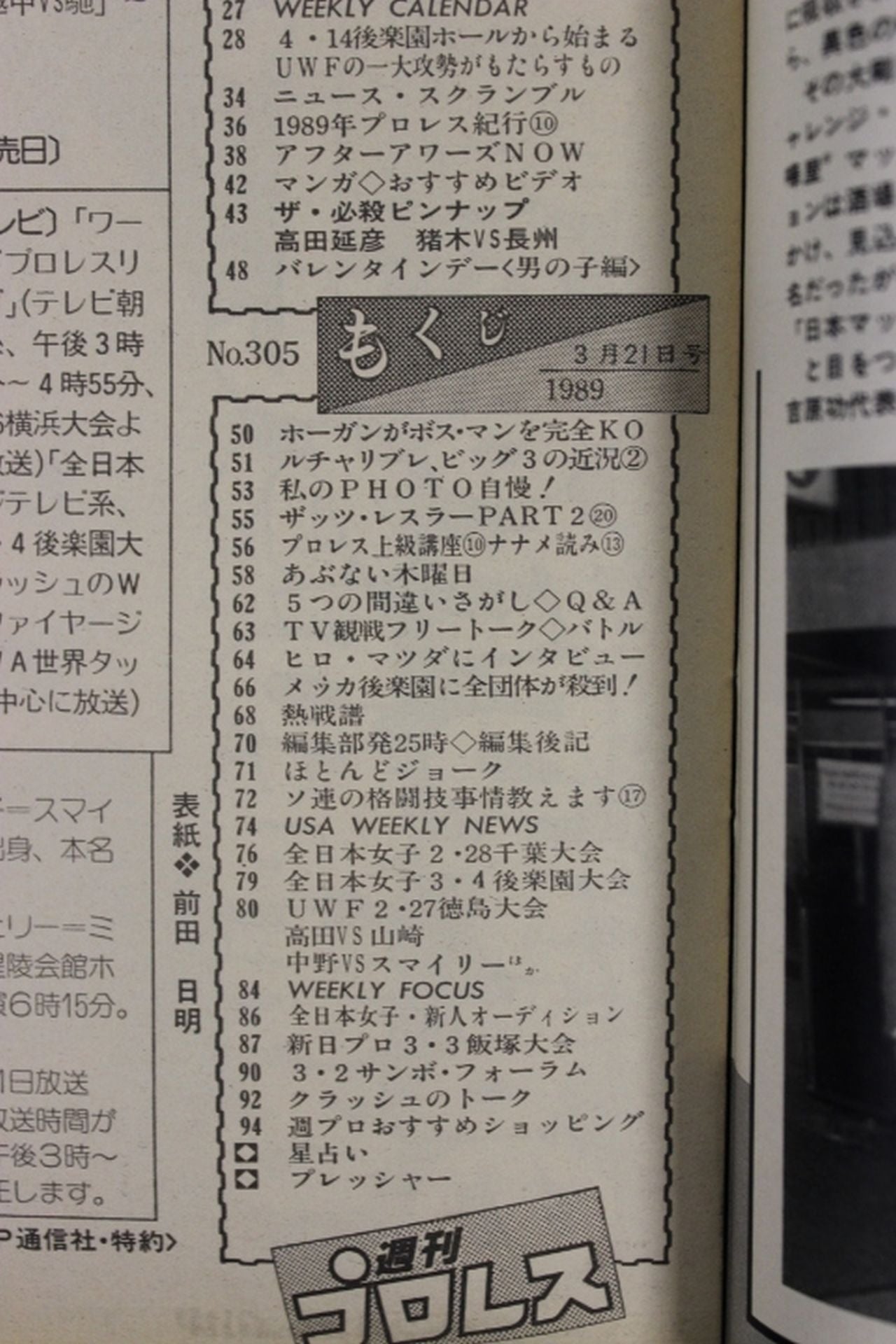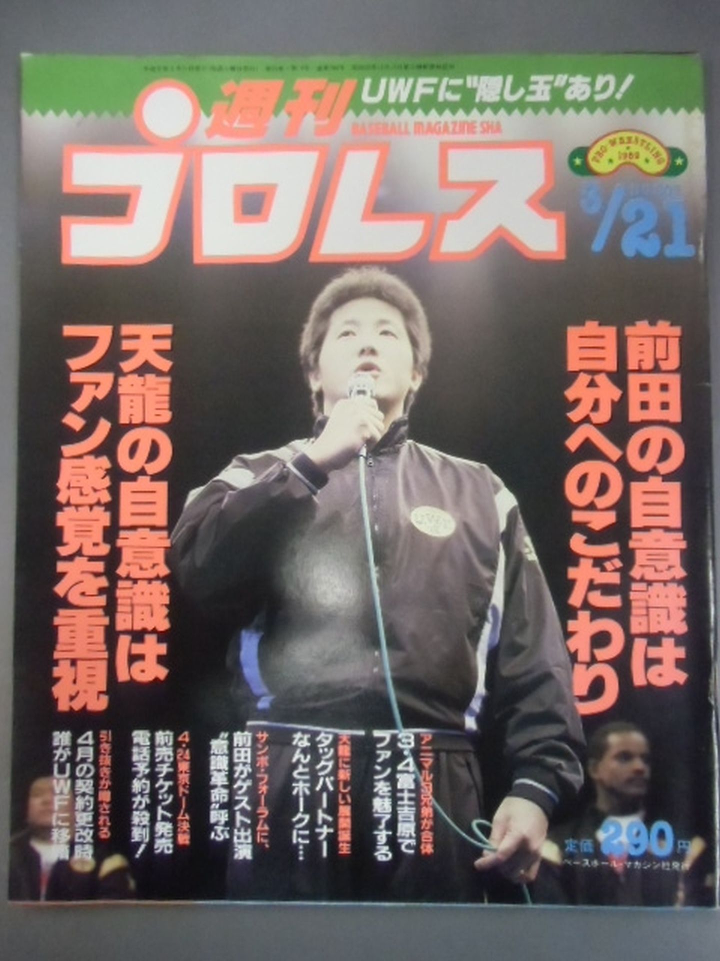 1989 Maeda's self-consciousness is an obsession with himself Tenryu 's self-consciousness emphasizes fan sensations / There is a "hidden ball" in UWF! / Pin-up: Nobuhiko Takada, Antonio Inoki vs Riki Choshu Cover: Akira Maeda