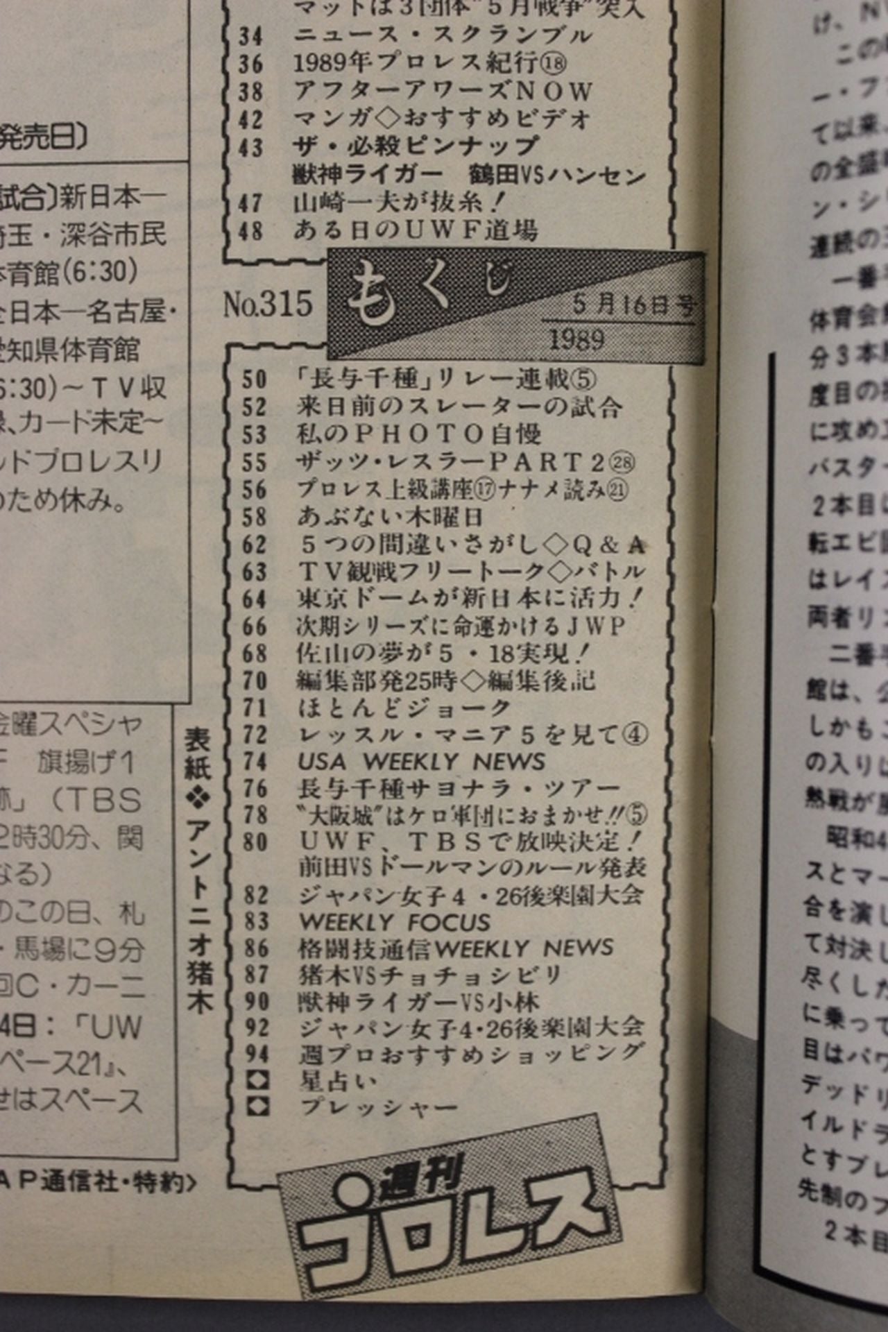 1989 4.24 Tokyo Dome Inoki , a premonition of retirement Fighting spirit, find the power hidden in it! / Pin-Up: Jumbo Tsuruta vs Stan Hansen, Beast God Liger vs Kuniaki Kobayashi Cover: Antonio Inoki