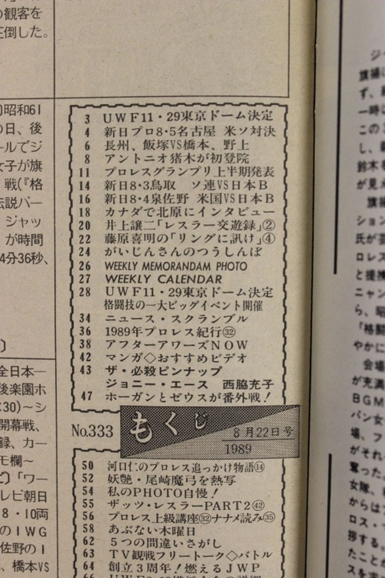 UWF November 29 Tokyo Dome decided!! / Pin-up: Mitsuko Nishiwaki, Johnny Ace / Cover: Tokyo Dome