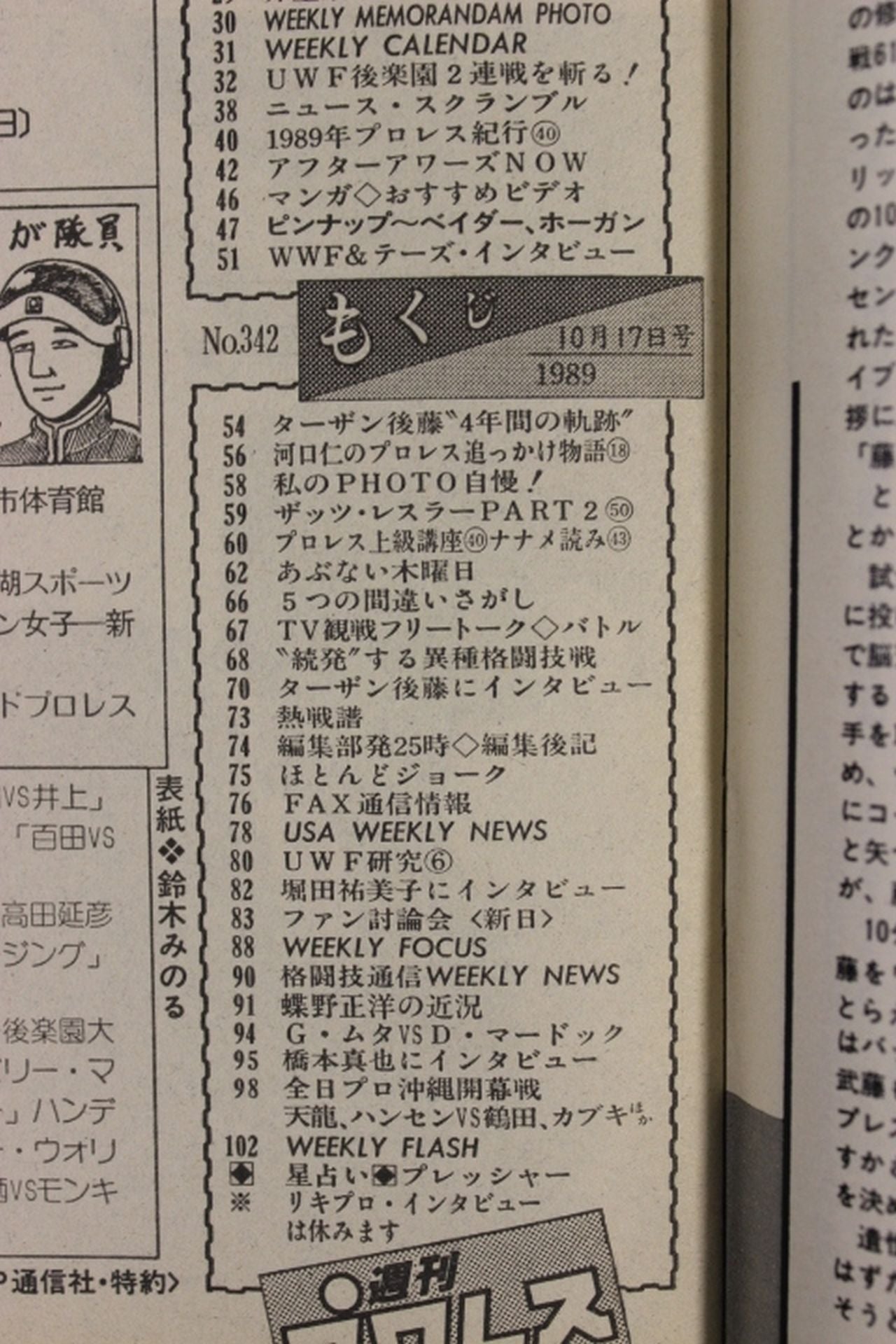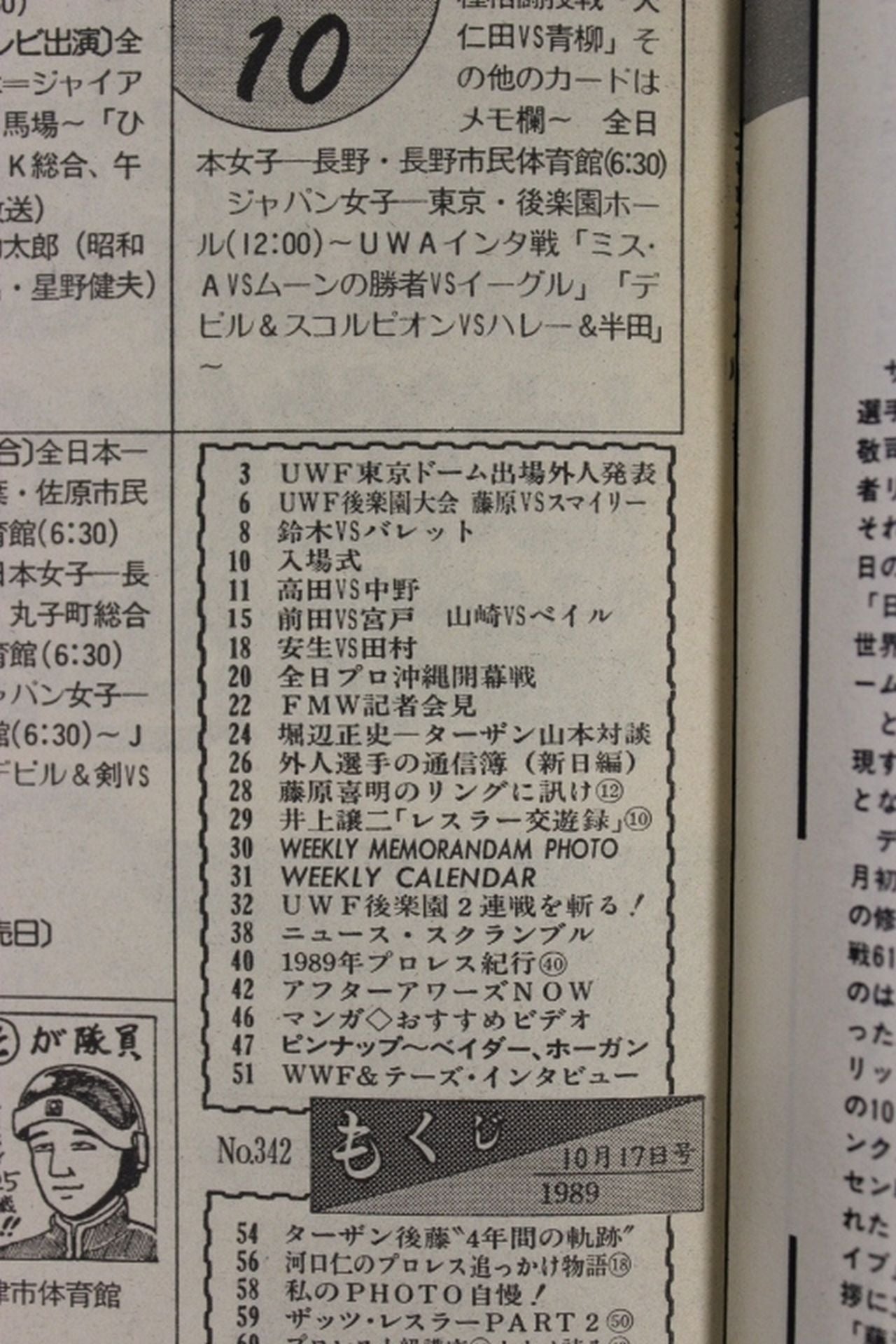 1989 Thorough tracking of the one-hour box office on 9.30 and 10.1 Korakuen 2 consecutive matches were a testing ground for U / Pin-up: Big Van Vader , Hulk Hogan Cover: Minoru Suzuki