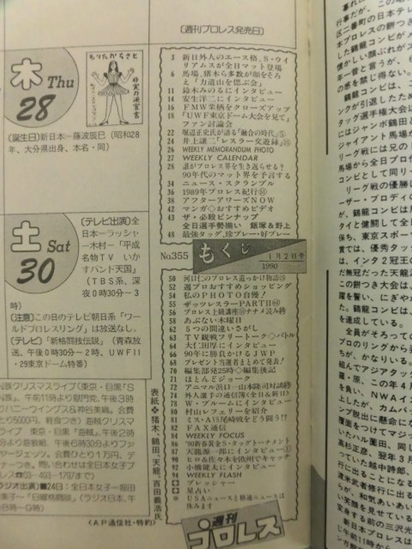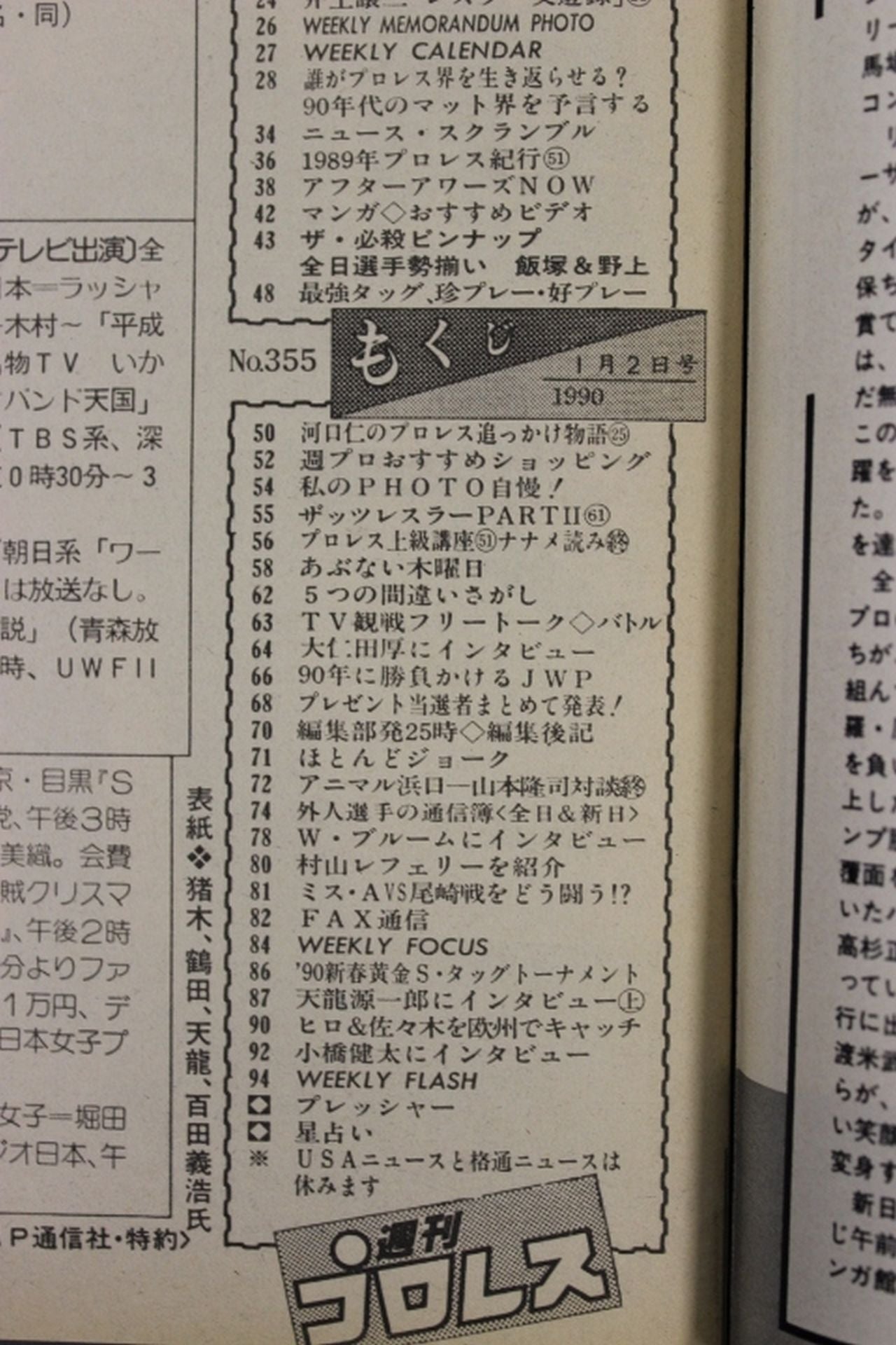 1990 Farewell to Heisei Pro Wrestling is a community of empathy created by wrestlers and fans 90s from TV to live music / Pin-up: Tenryu Alliance, All JapanPro Wrestling Regular Army / Takayuki Iizuka & Akira Nogami Cover: Jumbo Tsuruta, Antonio Inoki , Yoshihiro Momota, Tenryu Genichiro