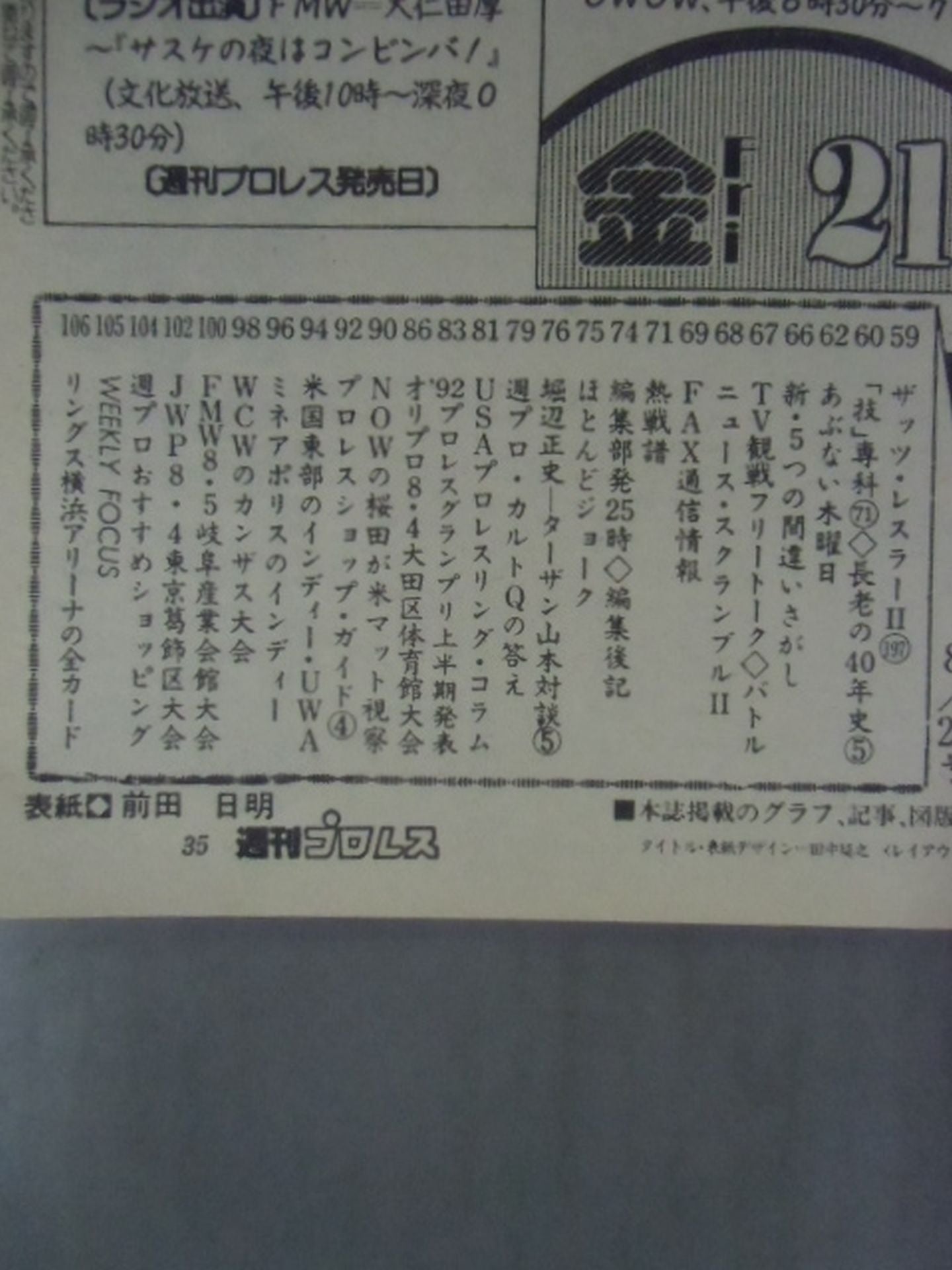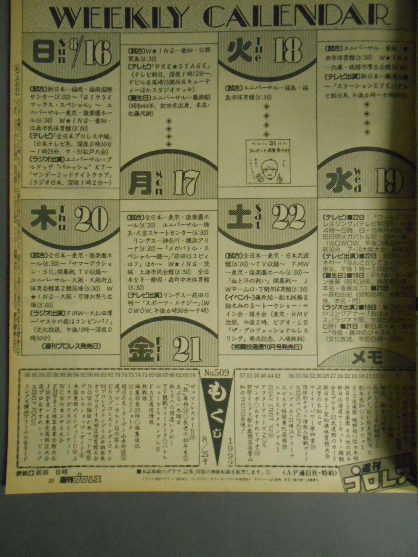 1992 Remaining heat, I would like to express my sympathy See you on August 21 at Yokohama Arena Rings - Akira Maeda / G1 Climax, opening Cover: Akira Maeda