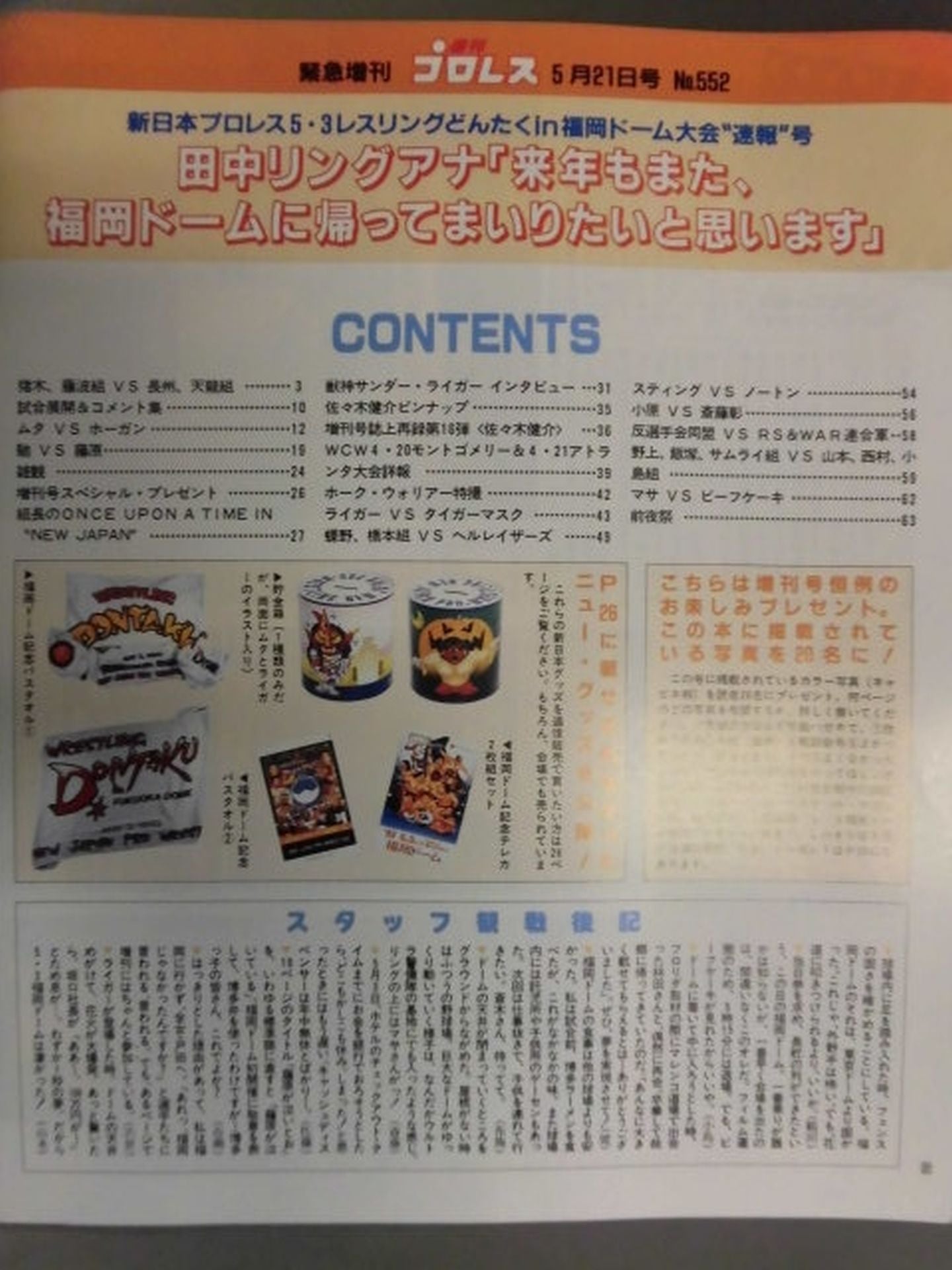1993 Fukuoka Dome Picture Scroll 5.3 Wrestling Dontaku in Fukuoka Dome "Bulletin" Issue Cover: Antonio Inoki , Tenryu Genichiro