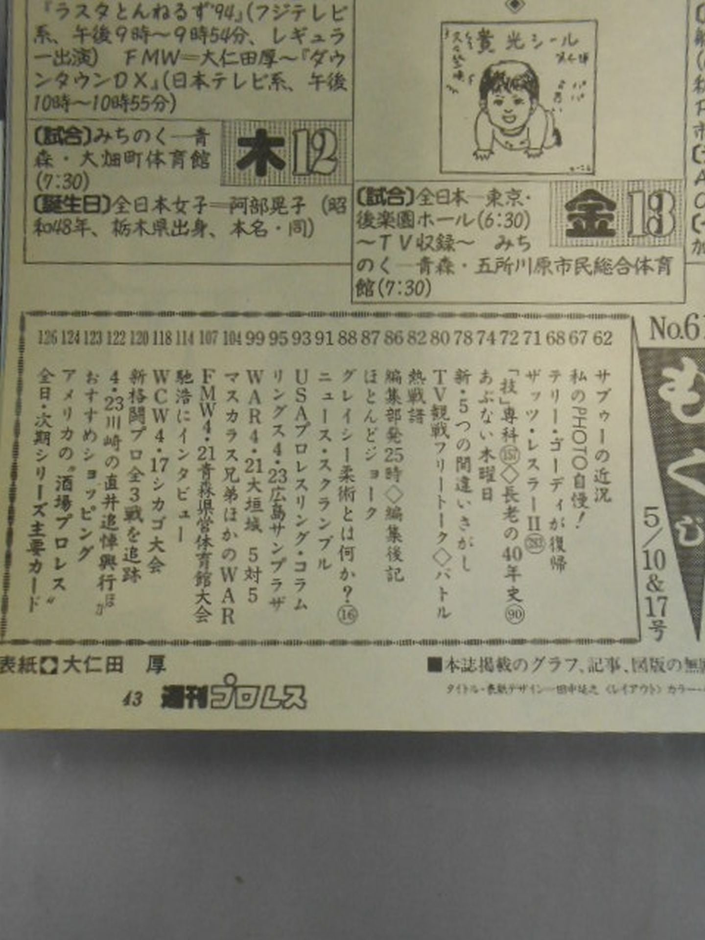 1994 Jado is a premonition of destruction That's why 5.5 Kawasaki is Tenryu ! / This year's GW is all Pro WrestlingPlay with! Cover: Atsushi Onita