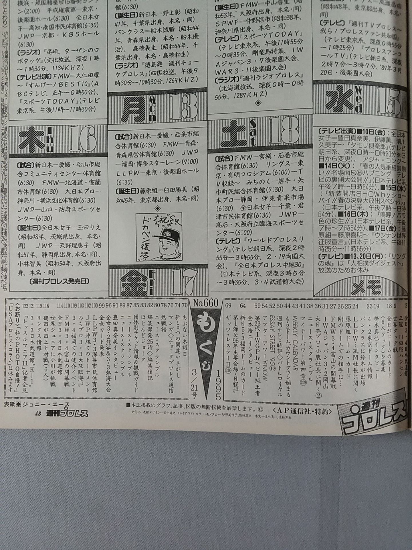 1995 "Spring Ichiban" Man Budokan Shunrai / 4.2 Dome, 5,000 yen and 3,000 yen tickets sold out Cover: Johnny Ace