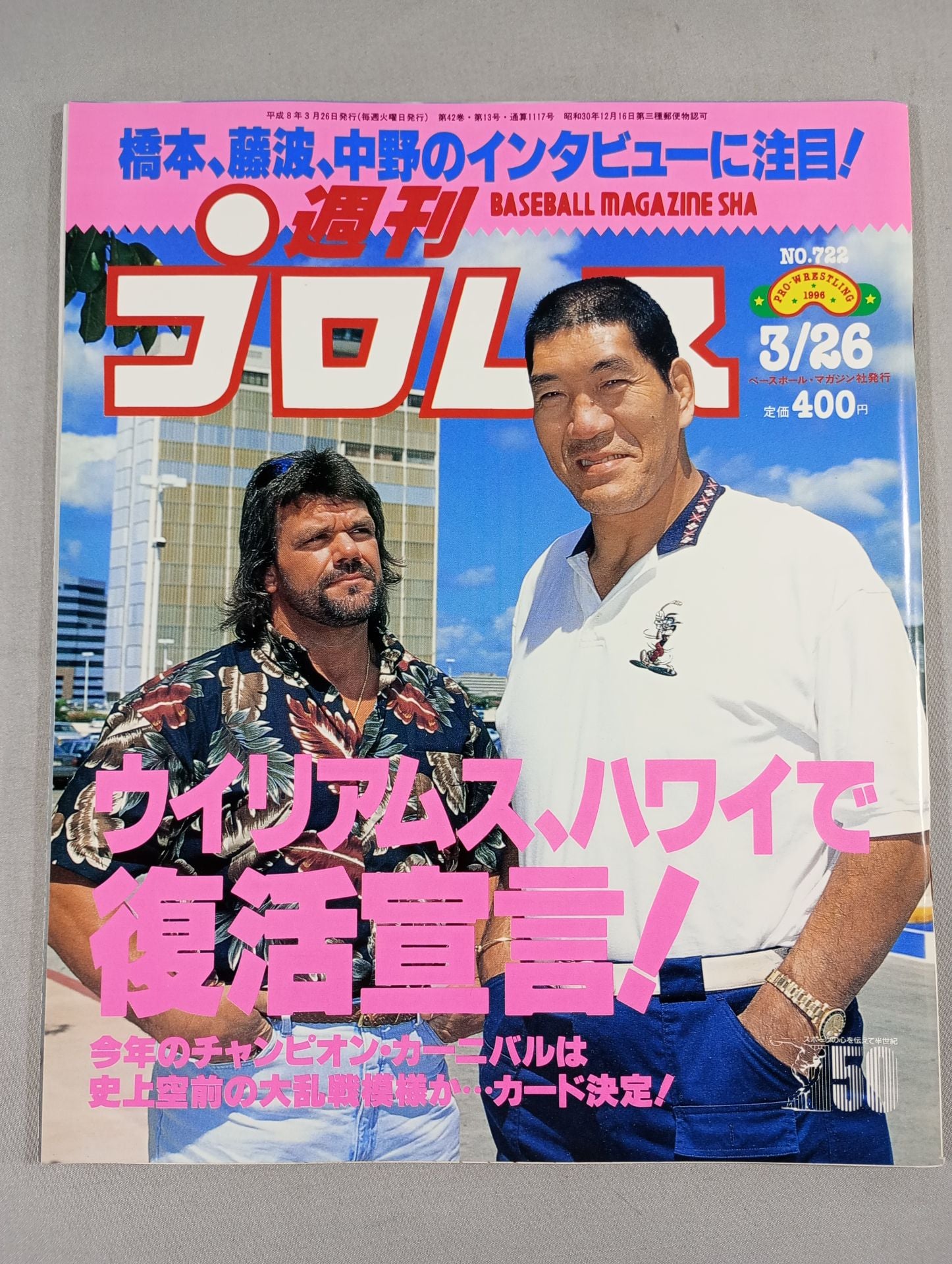 1996 Williams declares a comeback in Hawaii! This year's Carnival of Champions looks like an unprecedented brawl in history... Card TBD / Pay attention to the interviews with Hashimoto, Fujinami, and Nakano! Cover: Giant Baba , Steve Williams