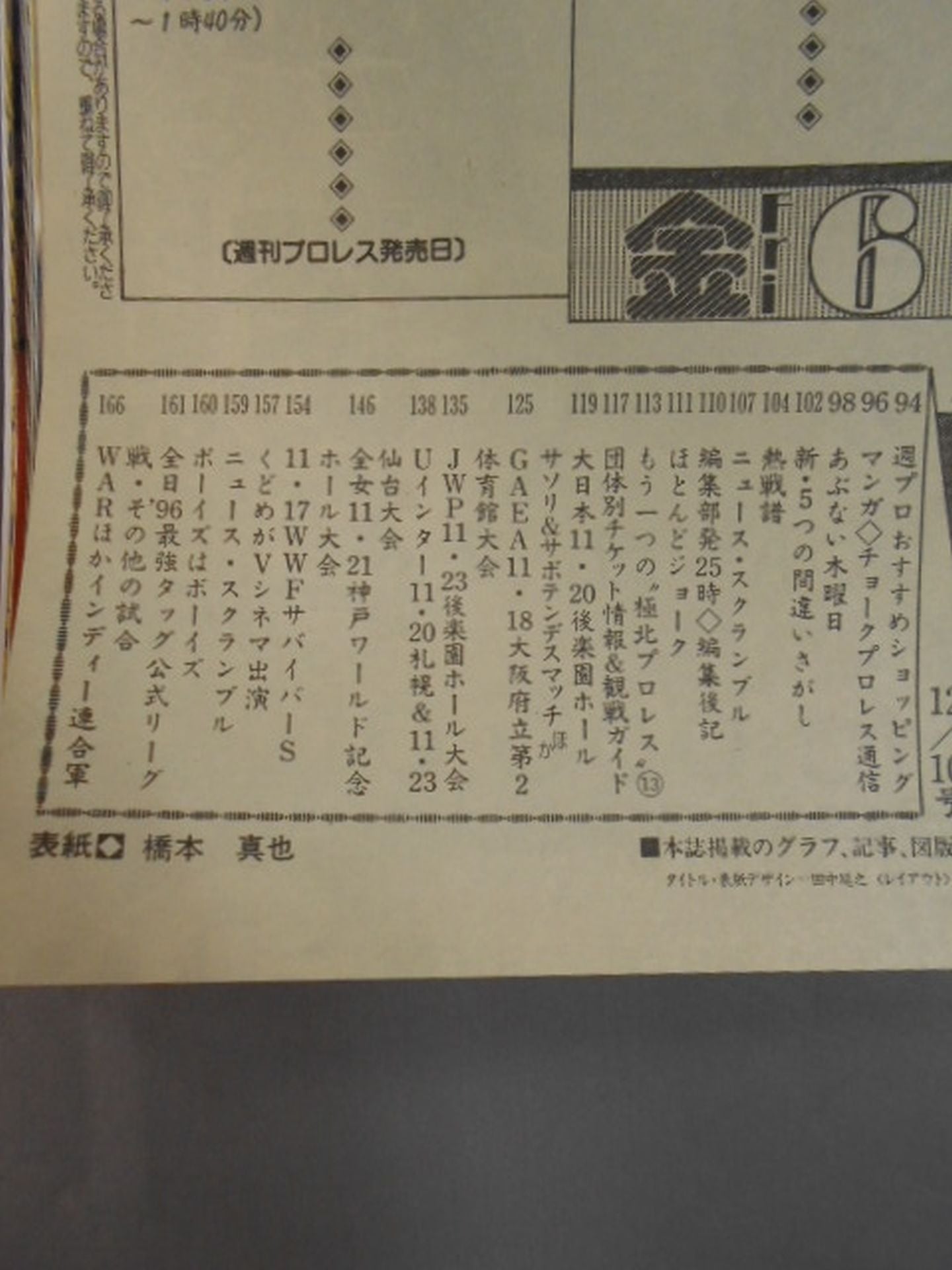 1996 It's time to come!! Roar in the "Holy Land" of the champion Hashimoto / Rings Maeda proposes the unity of the three U-kei factions! / Pin-up: Chaparita ASARI, Super Delfin & Ijo del Santo Cover: Shinya Hashimoto