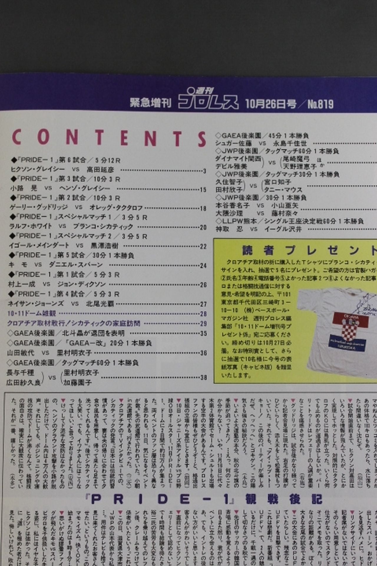 Takada, Chill・・・ KRS10/11 Tokyo Dome Tournament "PRIDE-1" Bulletin Issue / LLPW10/7 Kumamoto, JWP10/10 Korakuen, GAEA10/10 Korakuen Cover: Nobuhiko Takada