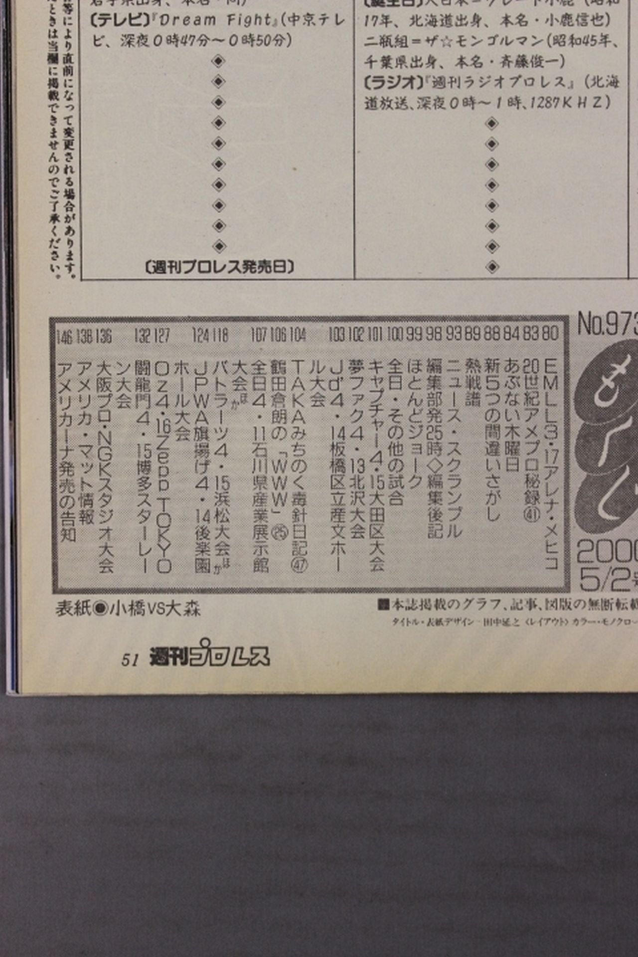 2000 Declaration of champion in the first V of the 10th year Piercing kenta Kobashi !/ New Japan Pro Wrestling ! G-EGGS Fukuda is seriously ill due to intracerebral hemorrhage Cover: Kenta Kobashi , Takao Omori