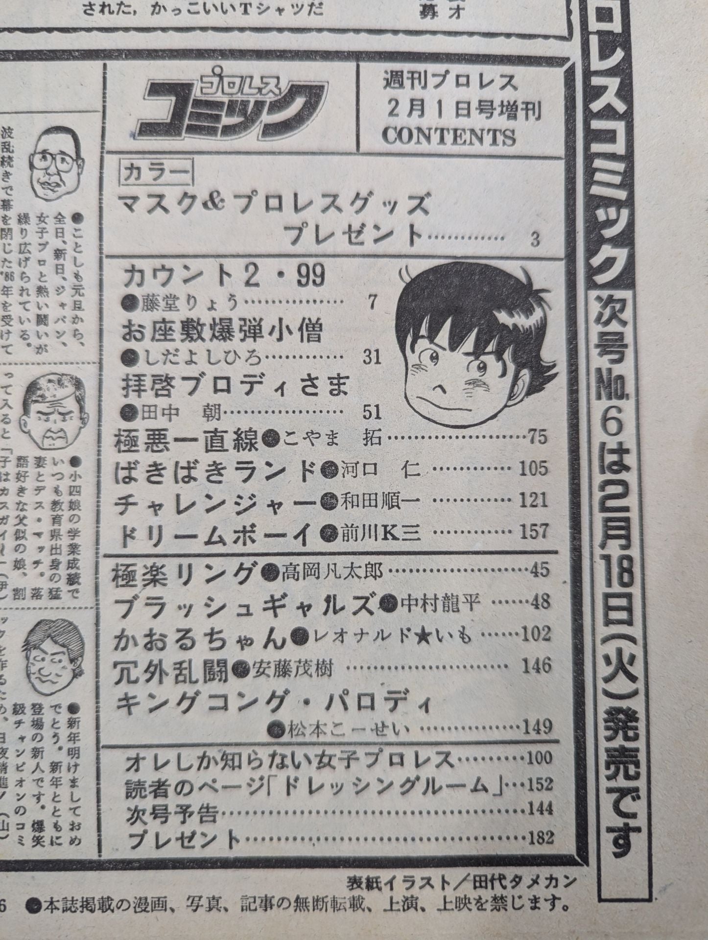 1986 Edited by Chenpei Nosue / Mask & Pro Wrestling Goods Big Present Popular Manga ArtistShikishi ( Autograph board ) is also present Cover: Giant Baba , AntonioInoki (illustration)