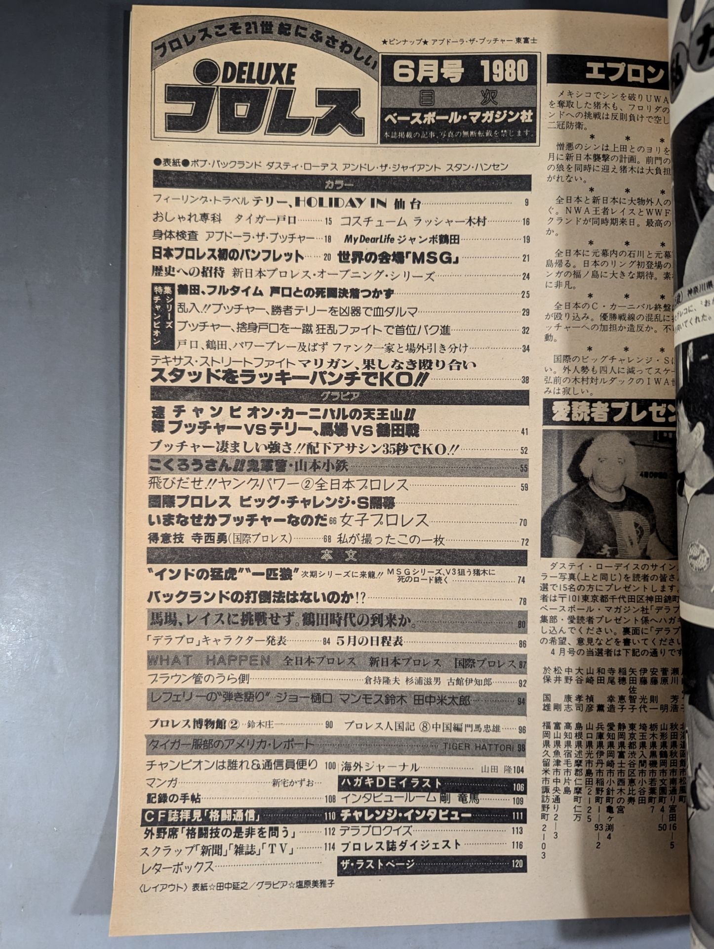1980 Champion Carnival Heat Sheet / [Appendix] 〇 Pin-Up (Front: Abdullah the Butcher Back: Kenichi Azumafuji ) Cover: Dusty Rhodes , Andre the Giant , Bob Backlund, Stan Hansen