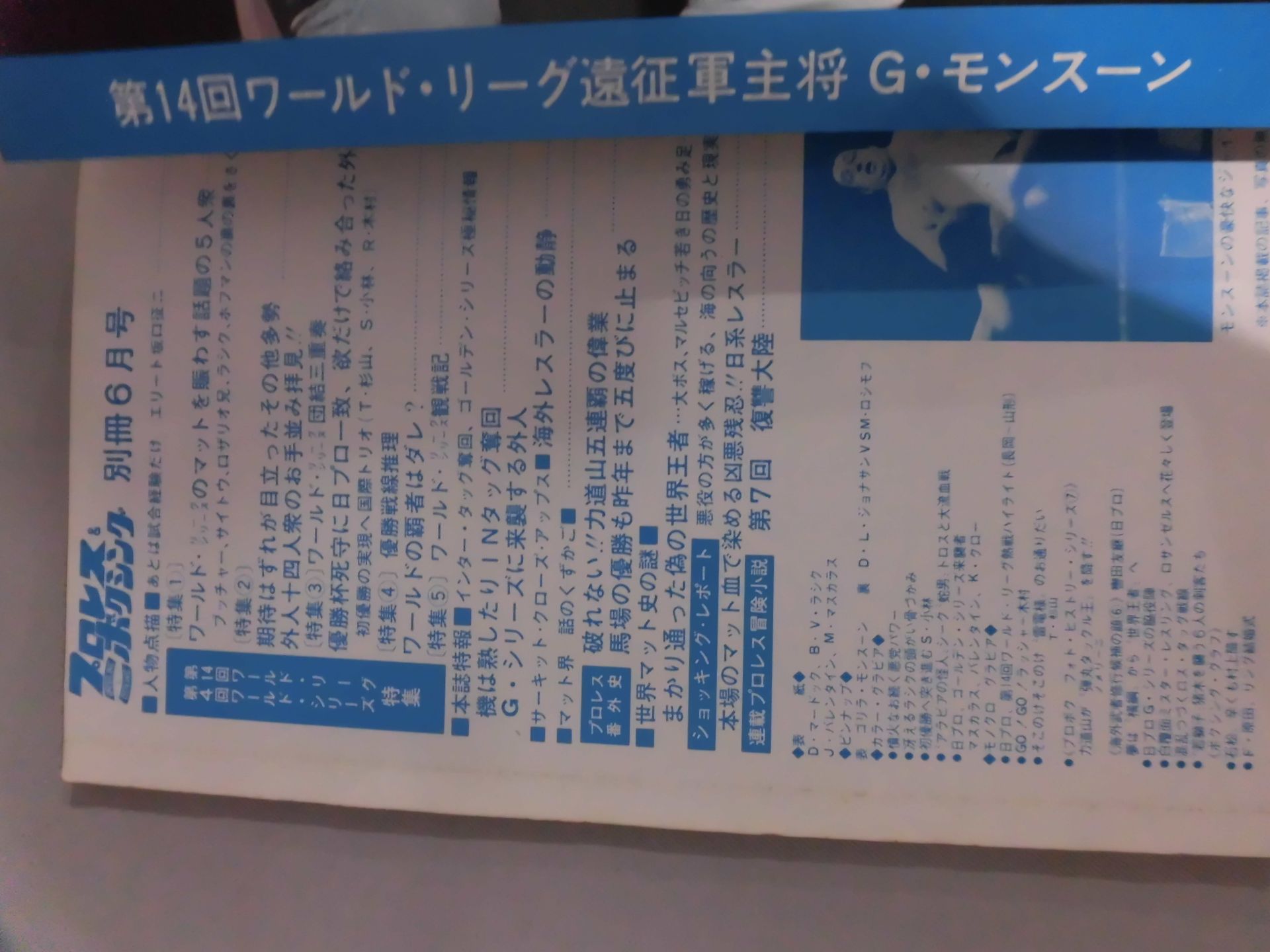 1972 Special report of this magazine "Devil Mask (Mascaras)", "Demon (Valentine)" and "Raven (K. Claw)" Attack!! [Nipponro G Series Color, Black and White , Text Feature] World League Series: The Five Talked About Crowds, Who Will Be the Champion?: Watching the Fourteen Foreigners The Winner Is Itadaki ... Japan united / 〇Pin-up (G. Monsoon) Cover: B. V. Raschk vs. R. Kimura J. Valentine Mil Mascaras D. Maddock