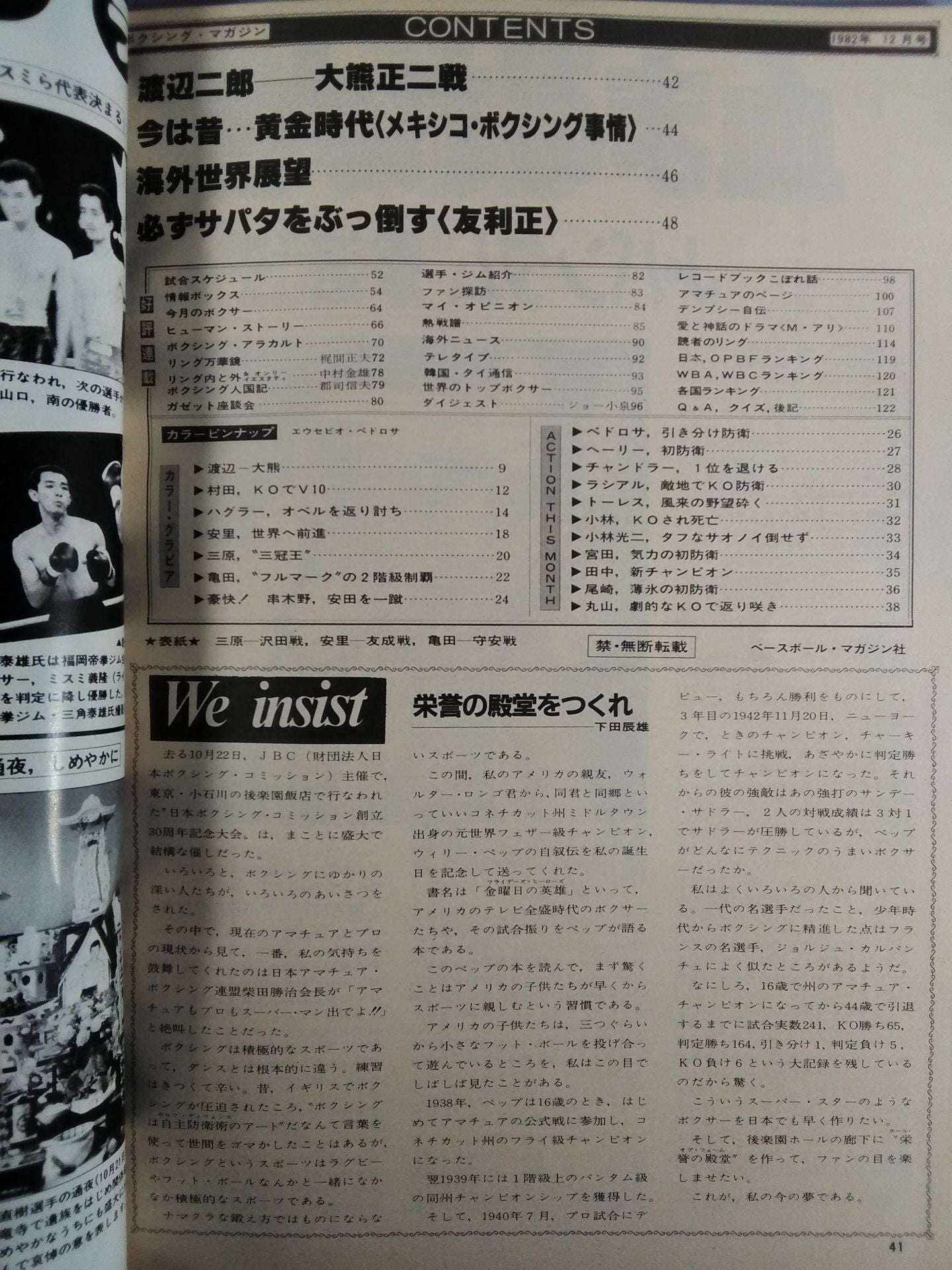 1982 Special Feature: Champion Carnival Jiro Watanabe vs Shoji Okuma Fight / Detailed Report World Middleweight Fight / M. Hagler vs F. Obel It's a long time ago... Mexican boxing world ★ Murata defends for the 10th time by KO / [Appendix] ◯ Pin-up (Eusebio Pedrosa)