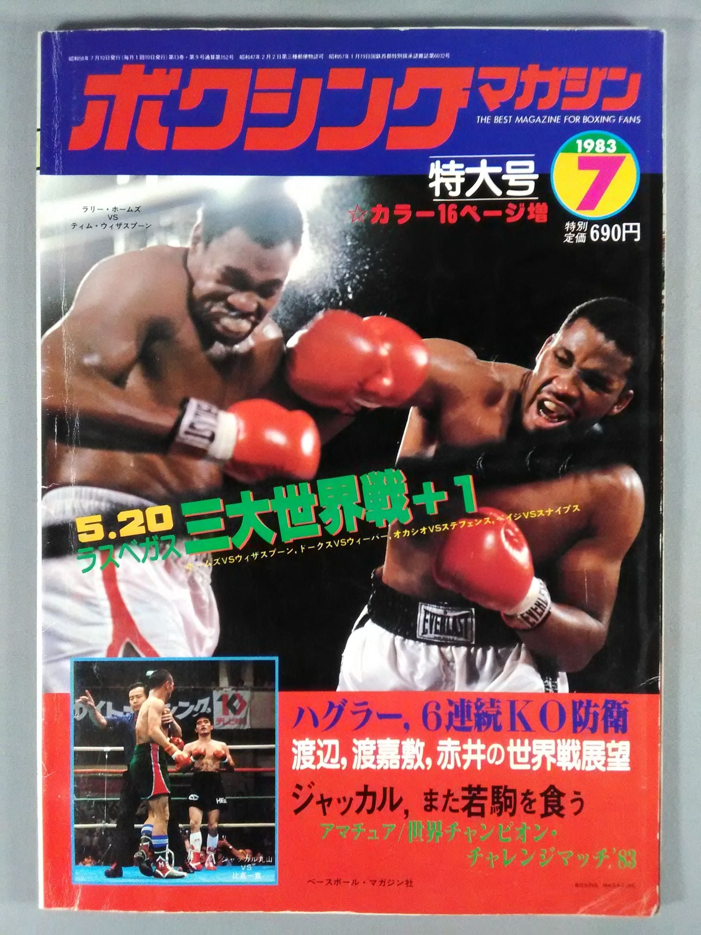 1983 5.20 Las Vegas 3 Showdowns +1 Hagler Defends 6 Consecutive KOs Watanabe, Tokashiki, Akai World Fight Outlook Jackal Eats Wakapawn Amateur / World Champion Challenge Match '83 / [Appendix] ◯ Pin-Up (Roger Mayweather) Cover: Holmes vs Withersboone, Jackal Maruyama vs Kazuki Higa