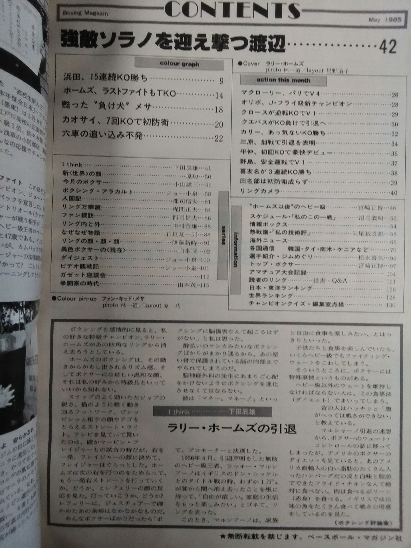 1985 Holmes goes to "undefeated retirement" Jiro Watanabe takes on TKO Solano in his last fight / [Appendix] ◯ Pin-Up (Juan Kid Mesa) Cover: Larry Holmes