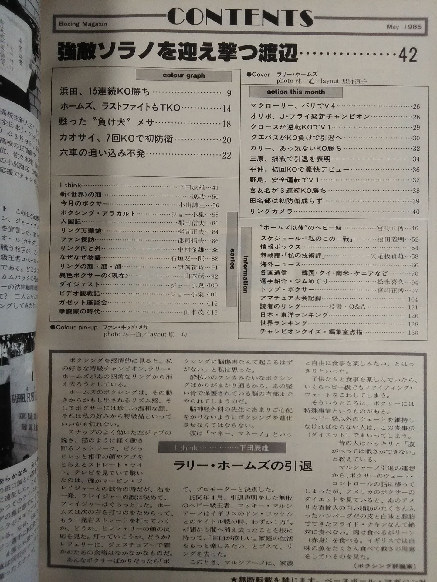1985 Holmes goes to "undefeated retirement" Jiro Watanabe takes on TKO Solano in his last fight / [Appendix] ◯ Pin-Up (Juan Kid Mesa) Cover: Larry Holmes