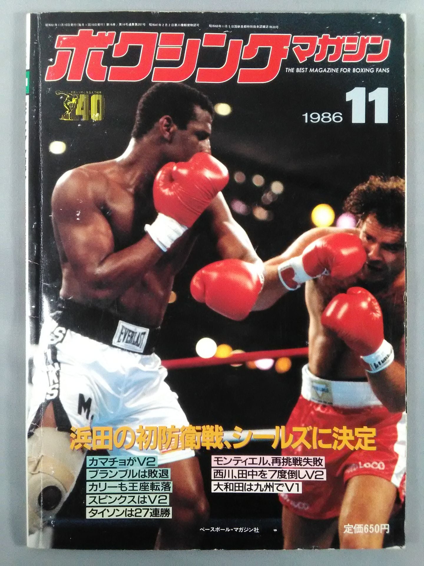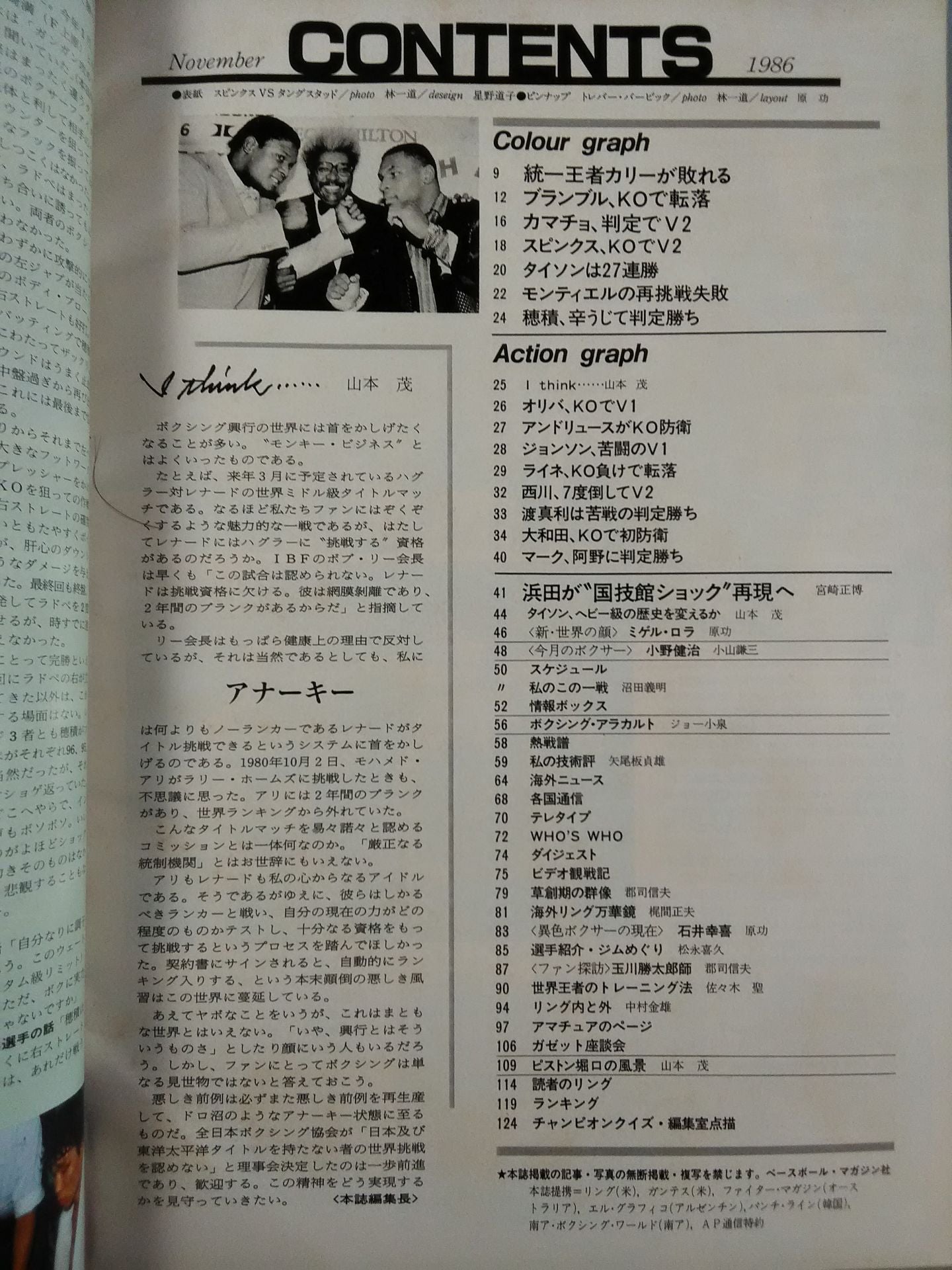 1986 Hamada's first defense, decided to be sticker Camacho V2 Bramble loses Curry also falls for the title Spinks V2 Tyson wins 27 consecutive matches Montiel fails to try again Nishikawa defeats Tanaka 7 times V2 Owada V1 in Kyushu / [Appendix] ◯ Pin-up (Trevor Barbick) Cover: Spinks vs Tungstad