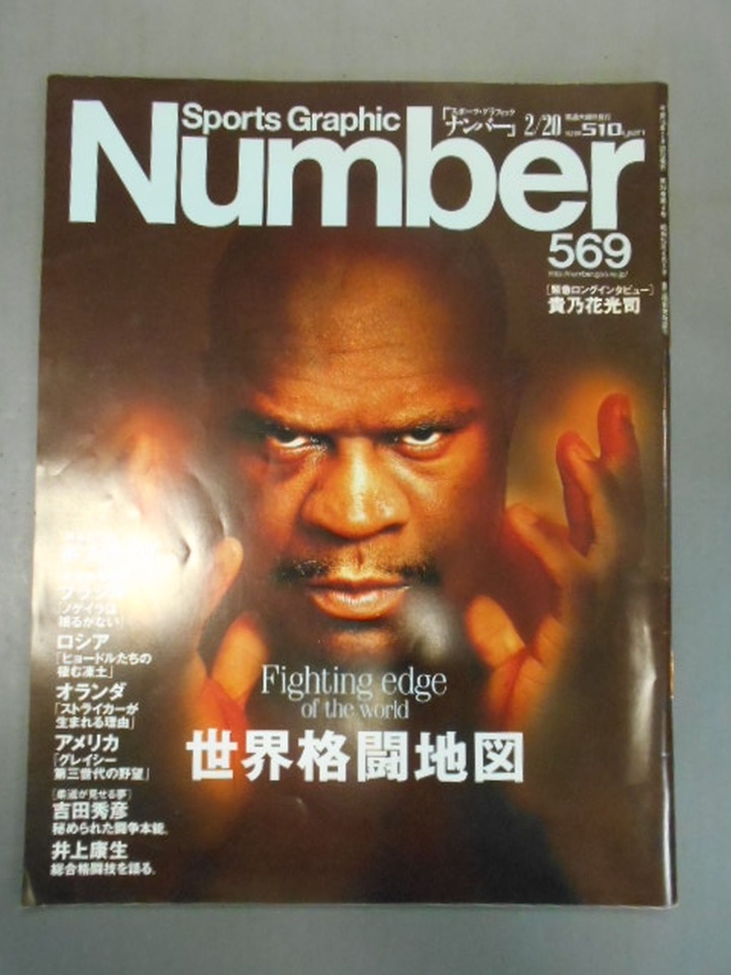 2003 World Fighting Map In-depth on-site coverage Brazil "Nogueira is unshakable" Russia "The frozen land where Fedor and his friends live" Netherlands "Why strikers are born" U.S.A. "Gracie's third generation ambition" Hidehiko Yoshida "The Hidden Fighting Instinct" Yasuo Inoue "Talking about mixed martial arts" Emergency InterviewKoji Takanohana Cover: Bob Sapp