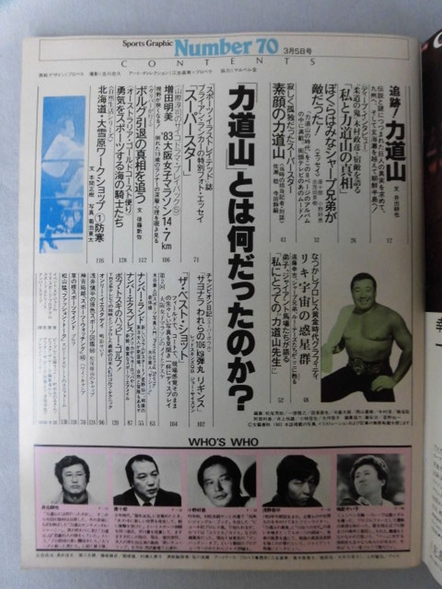 1983 The Truth About Rikidozan March 5, Showa 58 Issue Cover: Rikidozan Judo demon Masahiko Kimura talks about his nemesis "Me and RikidozanIn search of the truth about the giant shrouded in legends and mysteries, he went to Kyushu and the Korean Peninsula to "Chase! Rikidozan " disciples and Giant Baba talk about "Rikidozan teacher for me" Essay "We Were All Enemies of the Sharpe Brothers! Rikidozan with a real face and others Cover: Rikidozan