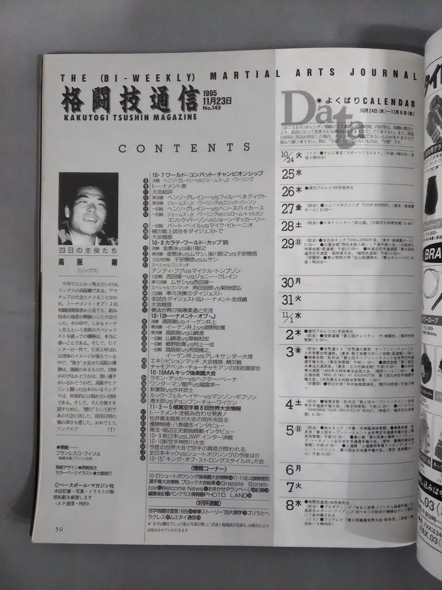 If there is no "Kyokushin " in Japan, this magazine will support Fillo! / 10.7 The 1st Combat Tournament Henzo Gracie Winner / 10.8 Shodo Kaikan KARATE World Cup Detailed Report! Cover: Francisco Filho