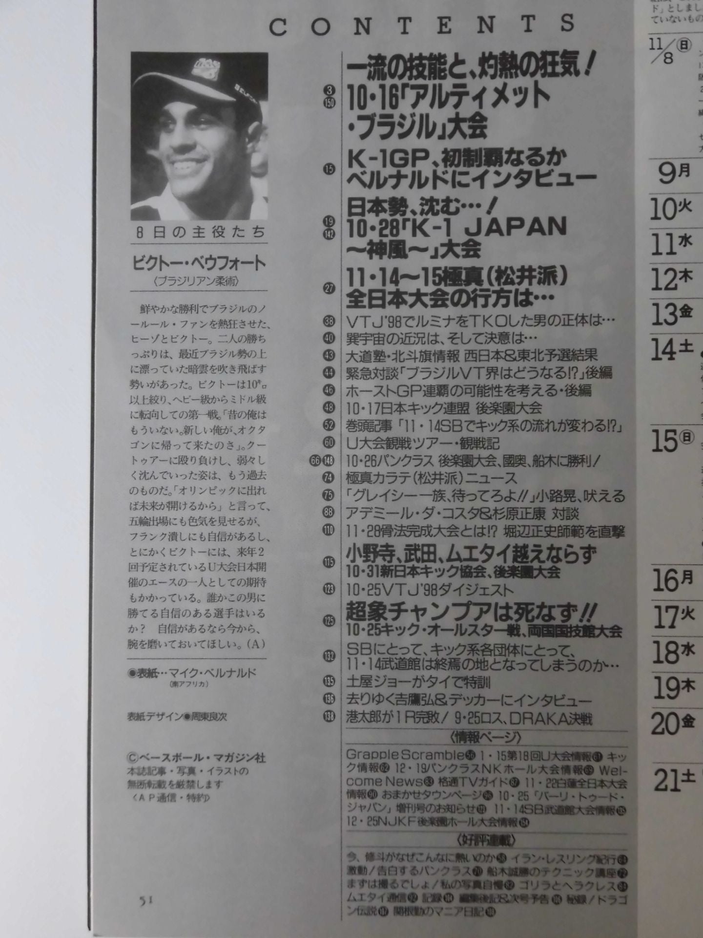 1998 Bernardo's unprecedented tailwind The beast is amazing! / Japan destroyed! 10.28K-1 JAPAN Kamikaze / 10.16 Ultimate Brazil Tournament Cover: Mike Bernardo