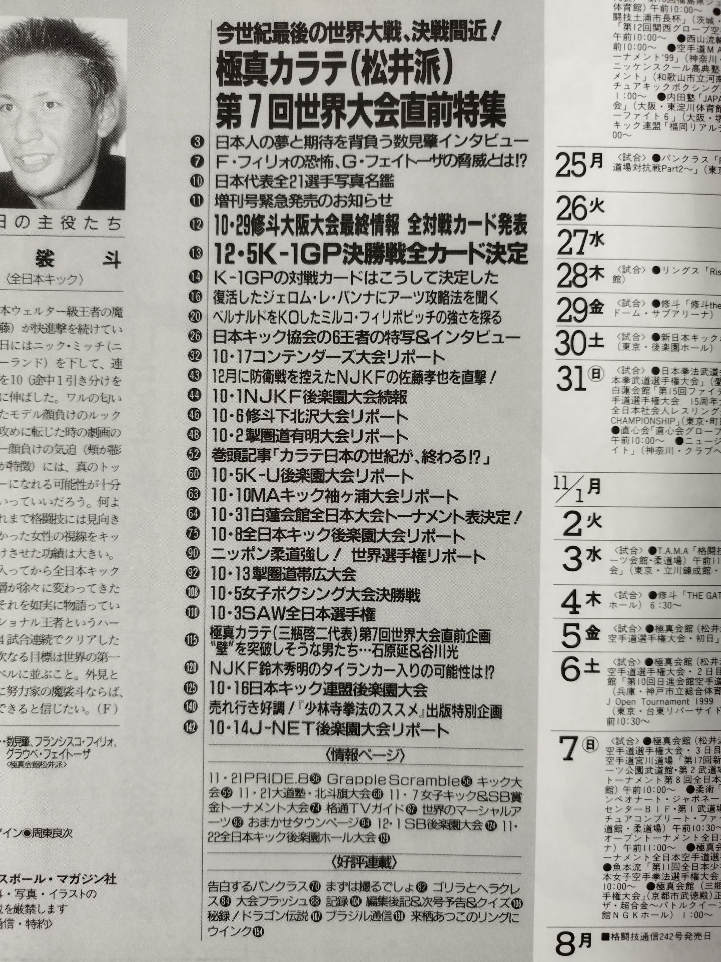 1999 KARATE There is no tomorrow in Japan!? / 11・21Kazushi Sakuraba vs Gracie decided at PRIDE.8! / 11・5~7 Kyokushin (Matsui faction) World Tournament Special Cover: Glaube Feitosa and Francisco Filho