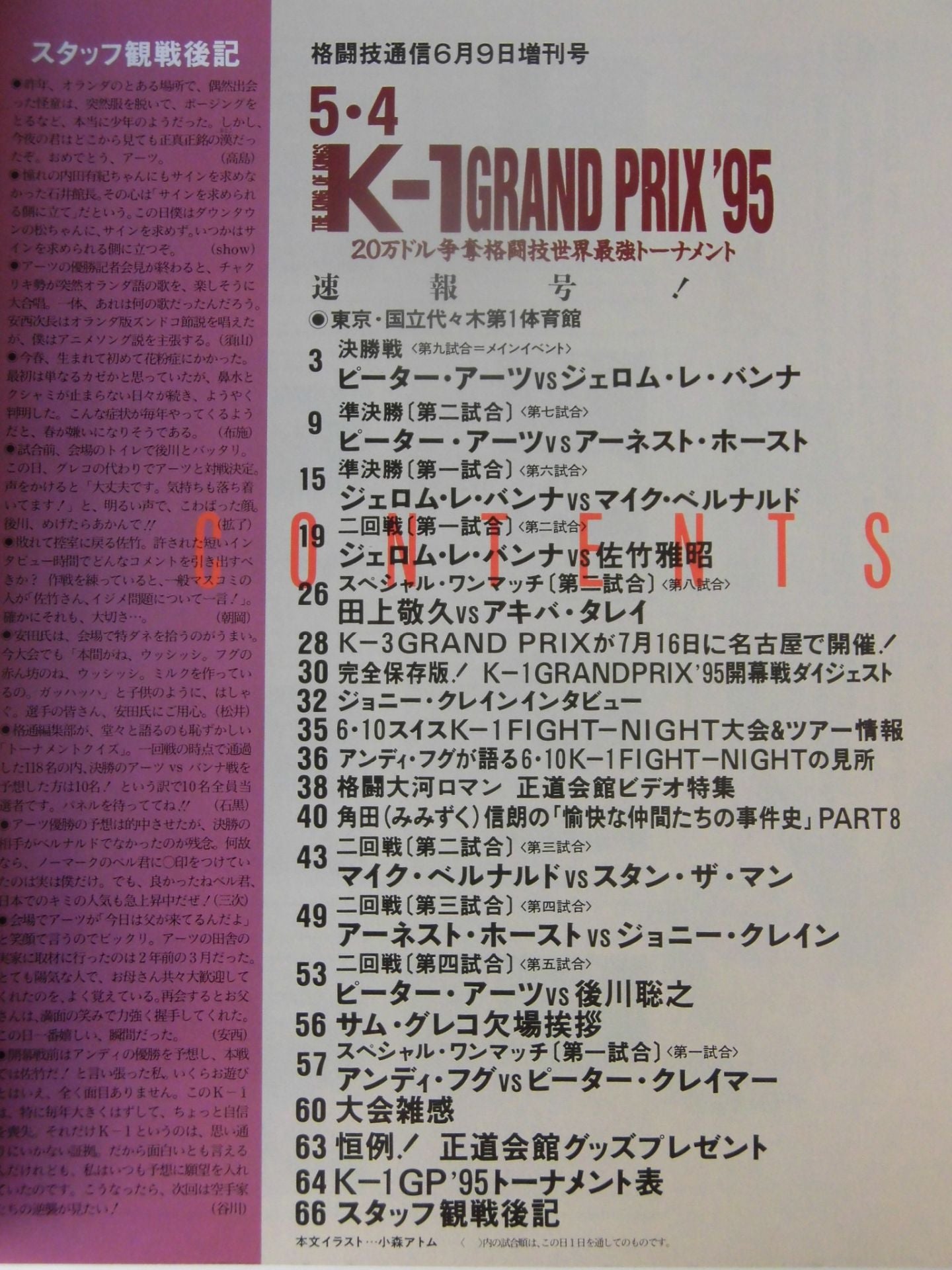 1995 "5・4K-1GRANDPRIX'95 Bulletin" Congratulations to Director Ishii! Dream Space K-1 Cover: Peter Aerts & Director Ishii