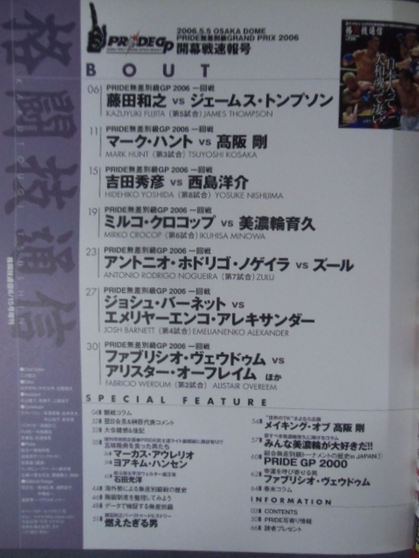 2006 Japan people have an amazing Yamato spirit! Cover: Kazuyuki Fujita vs James Thompson, Mark Hunt vs Tsuyoshi Takasaka