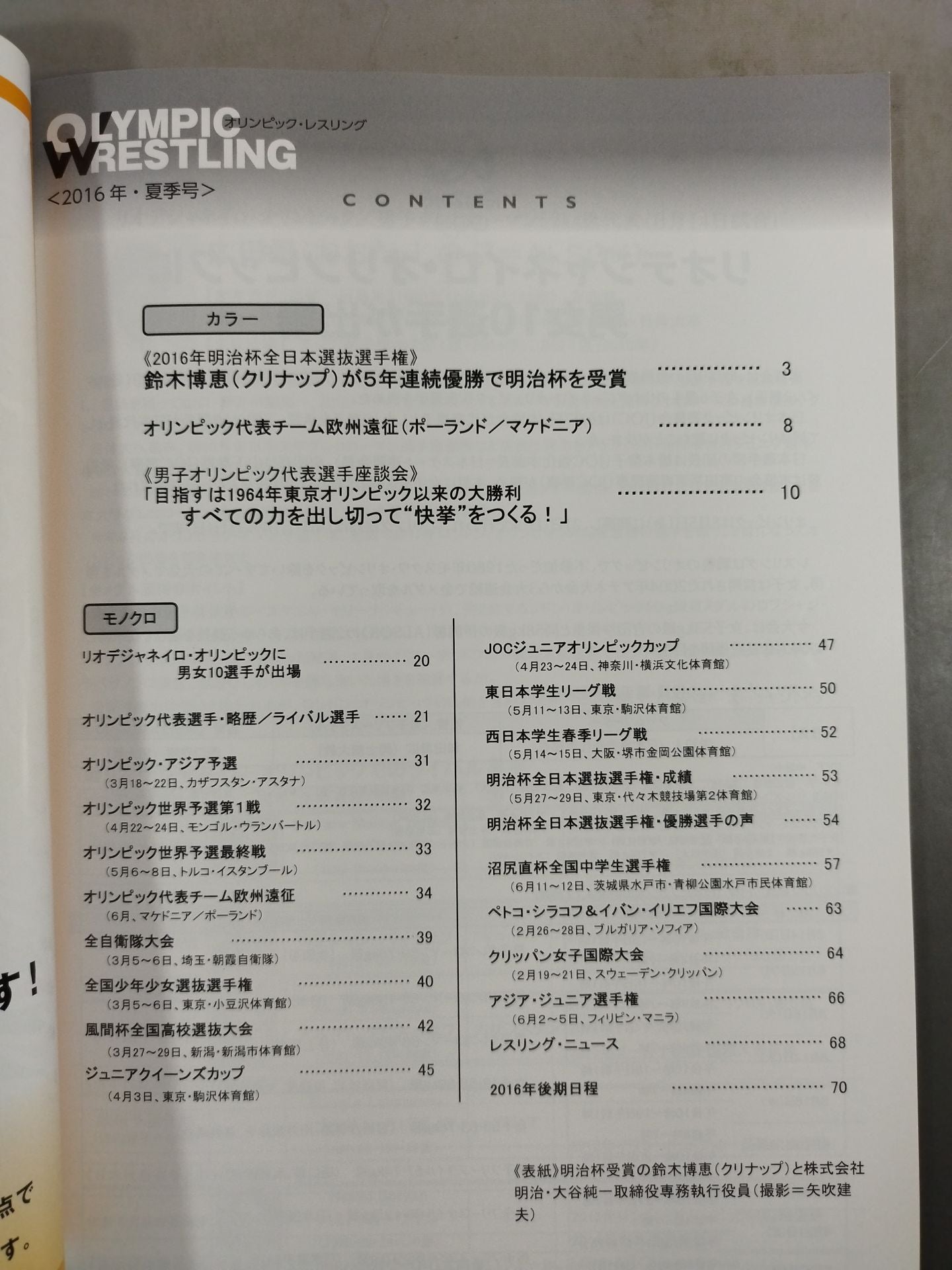 All Japan Selection fighters Special Feature / Rio de Janeiro Olympics Pre-Olympics Special Feature / Domestic and international tournament records from mid-March ~ mid-June (1st ~ 8th place rankings, etc.), as well as the following competitions in color digest / 2016 Meiji Cup All Japan SelectionFighters rights / Olympic national team European tour, etc.