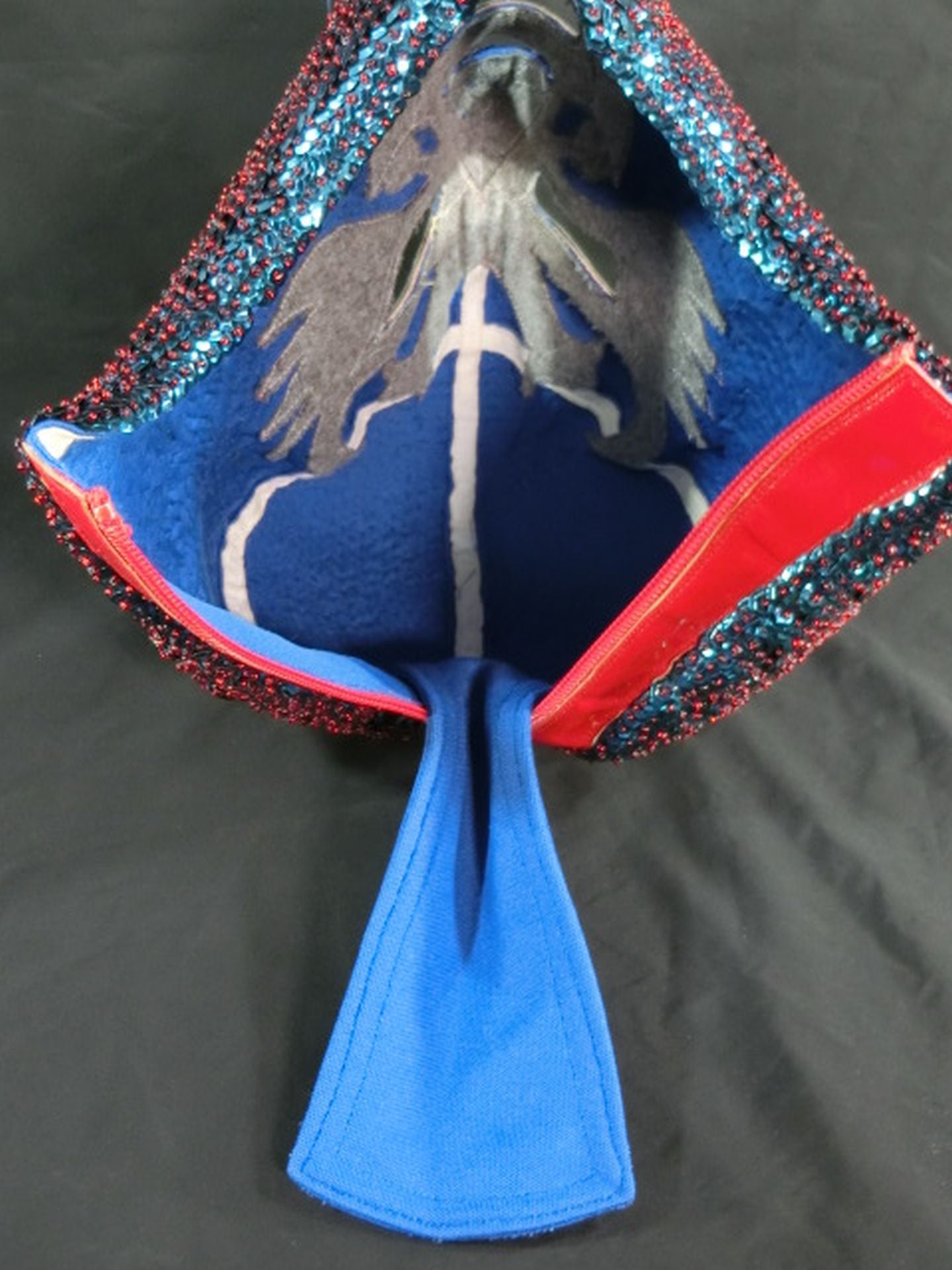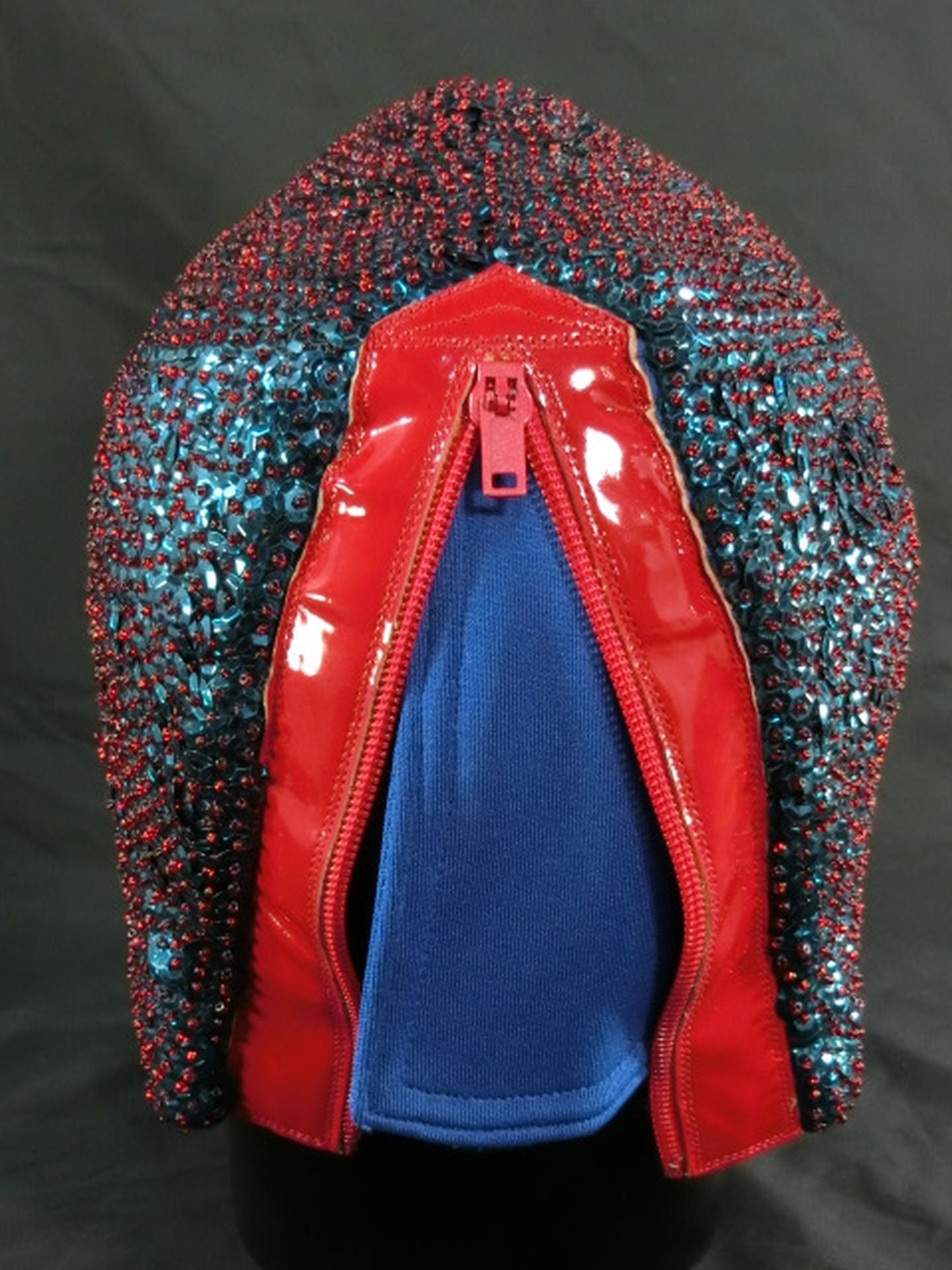 Blue Sequin Decorative Thick Fabric Red Leather Base Gold Leather Edge