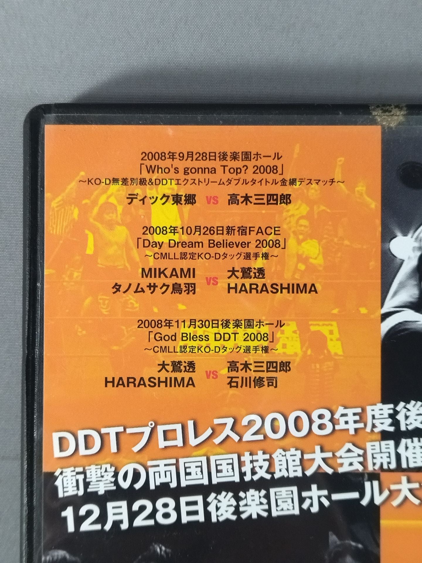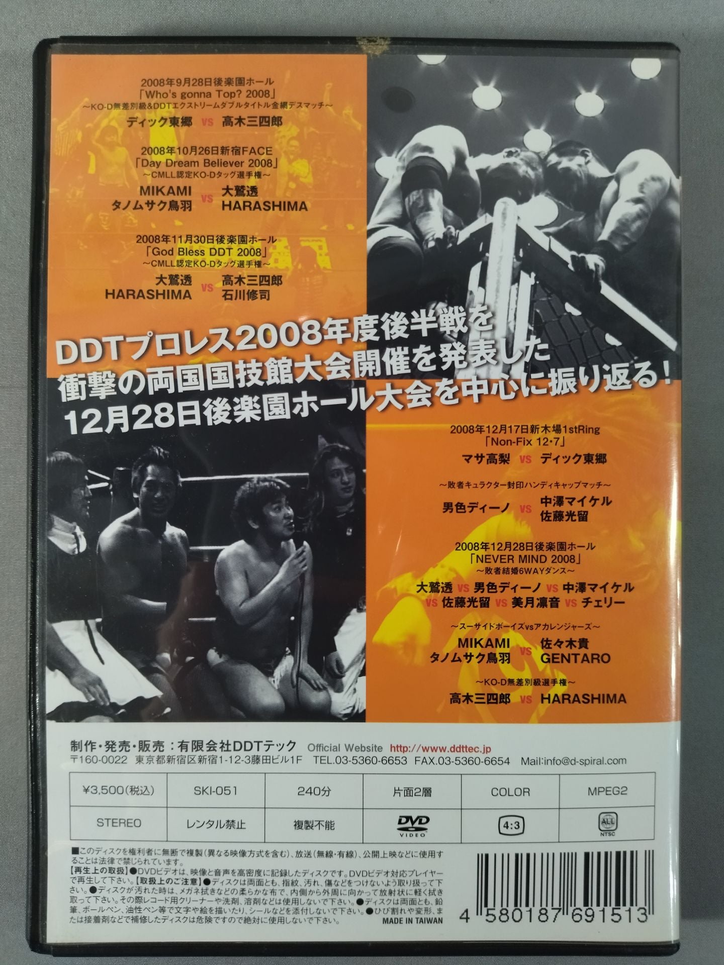 December 28, 2009 DDT Pro Wrestling announced the second half of 2008 as a shocking Ryogoku tournamentLooking back on the Korakuen Hall tournament! Includes Dick Togo vs Sanshiro Takagi and more!