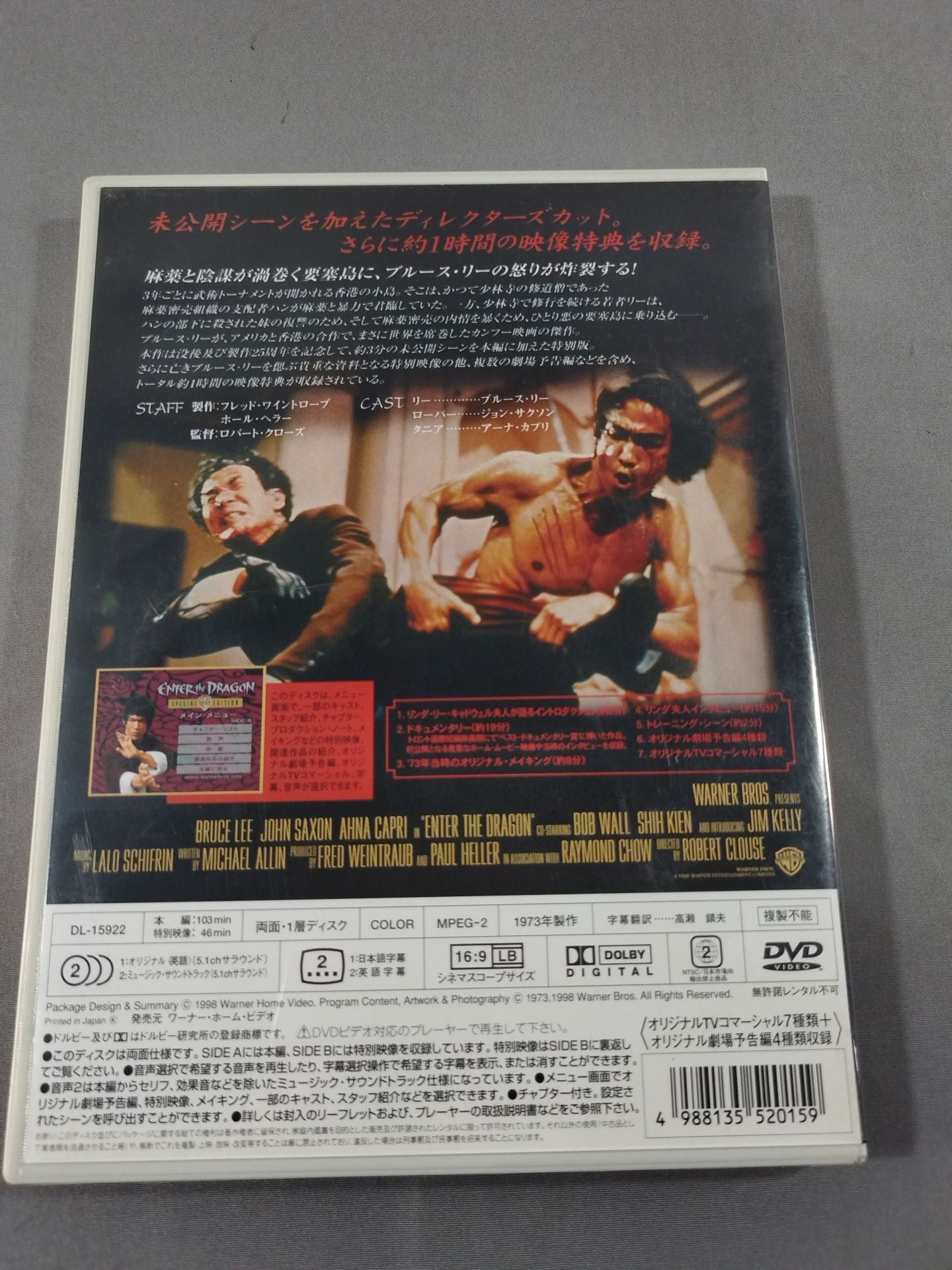 1998 Director's cut with unreleased scenes. In addition, about 1 hour of video bonus is recorded. On a fortress island full of drugs and intrigue, Bruce Lee's anger explodes!