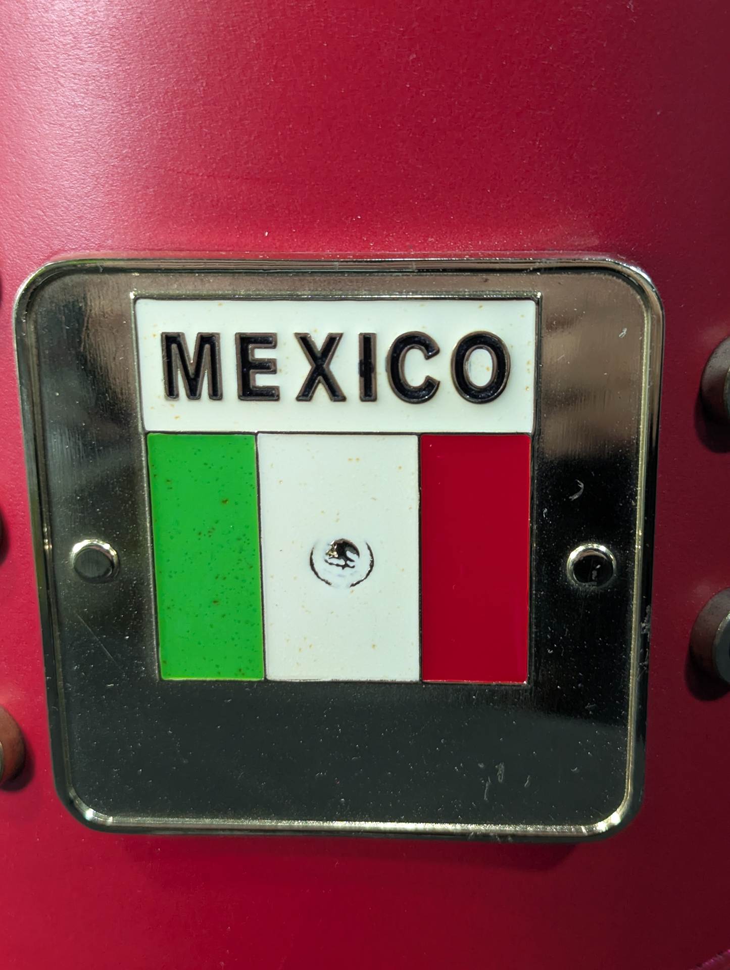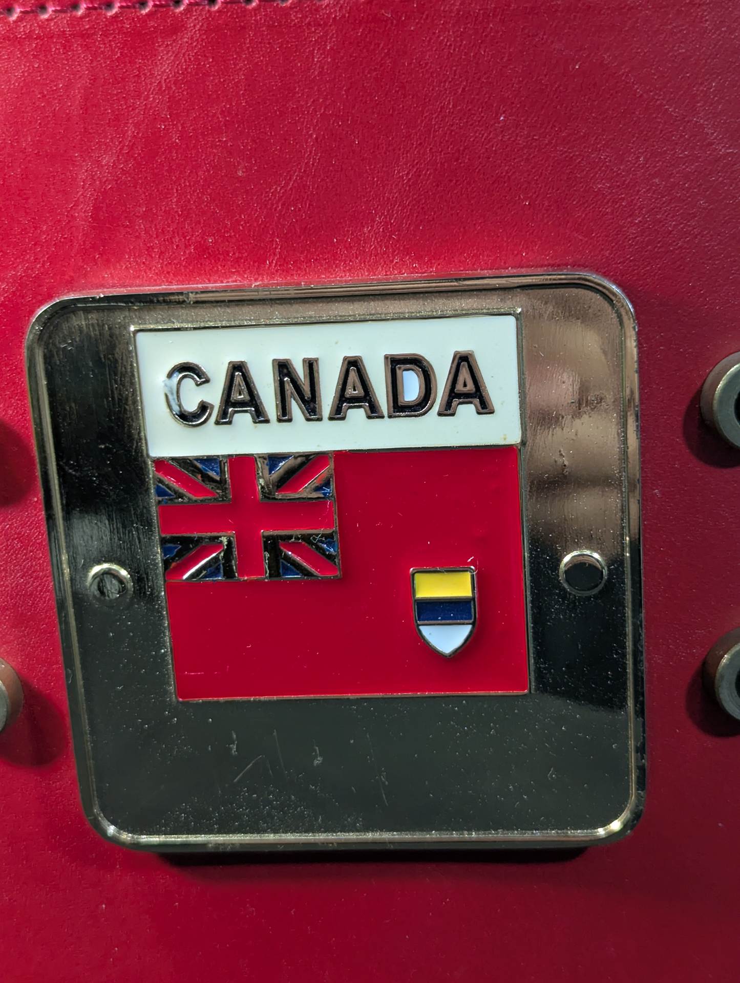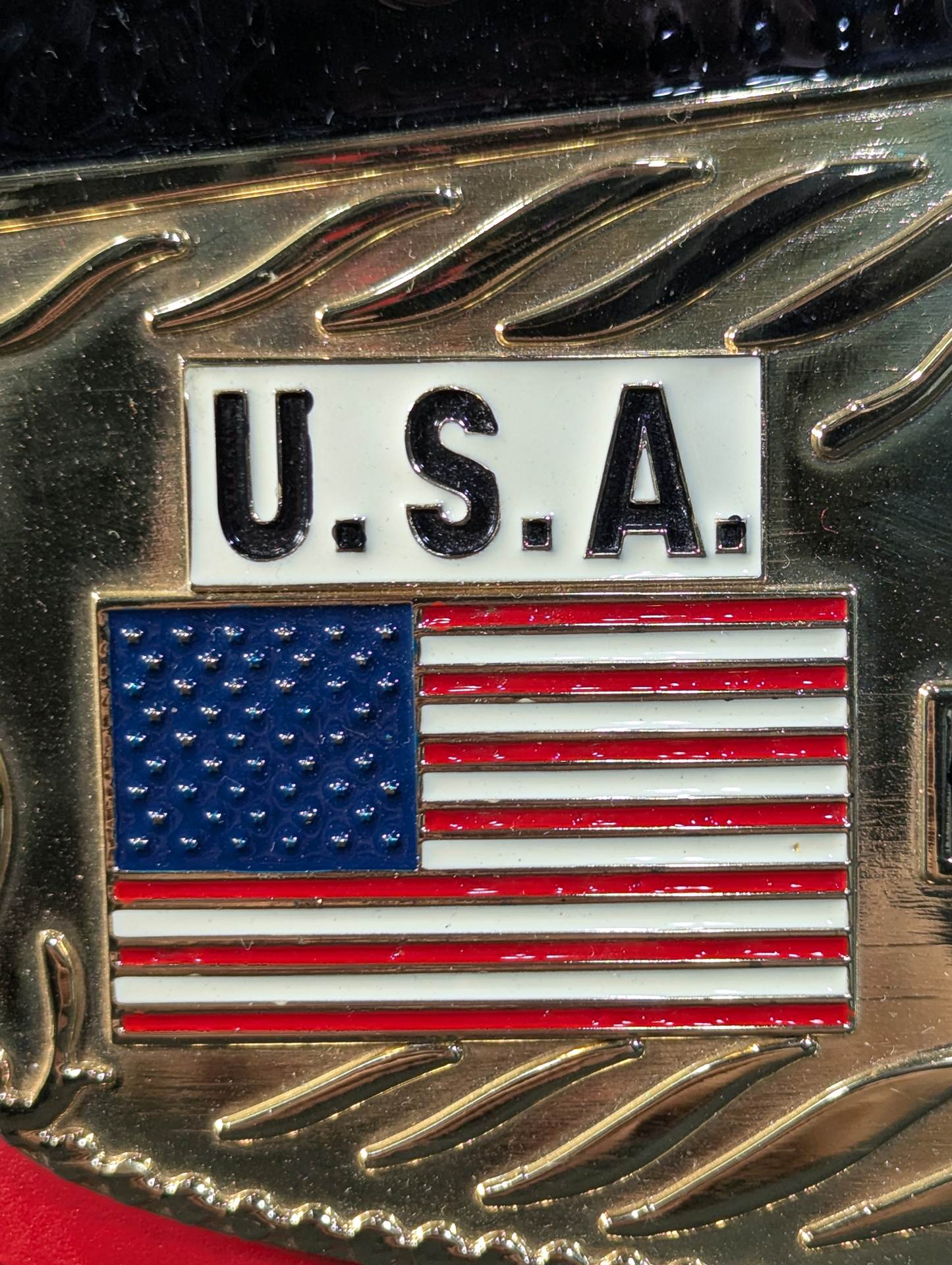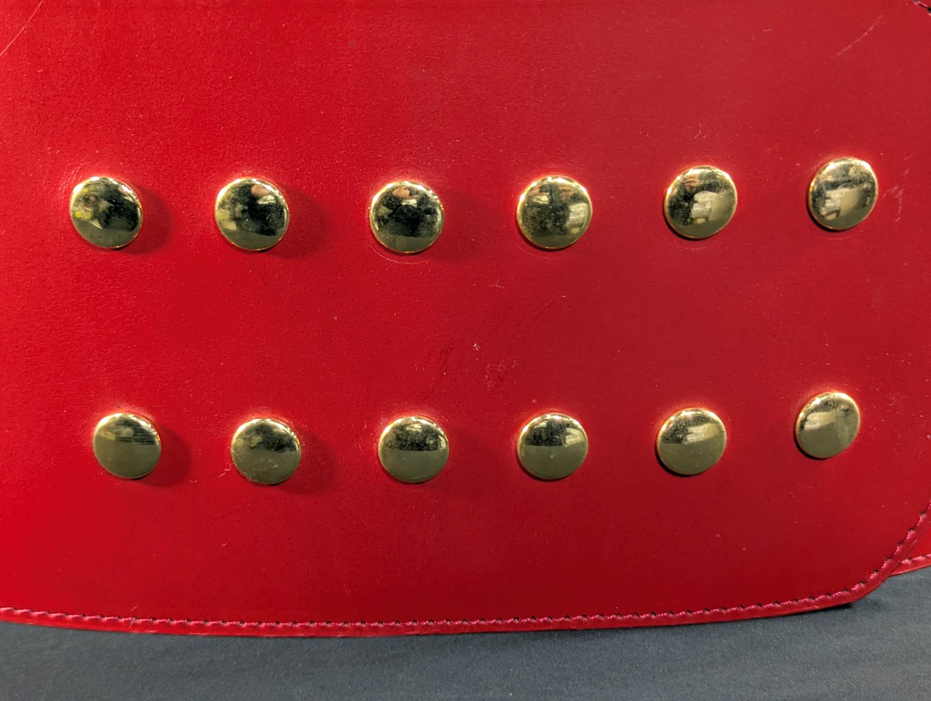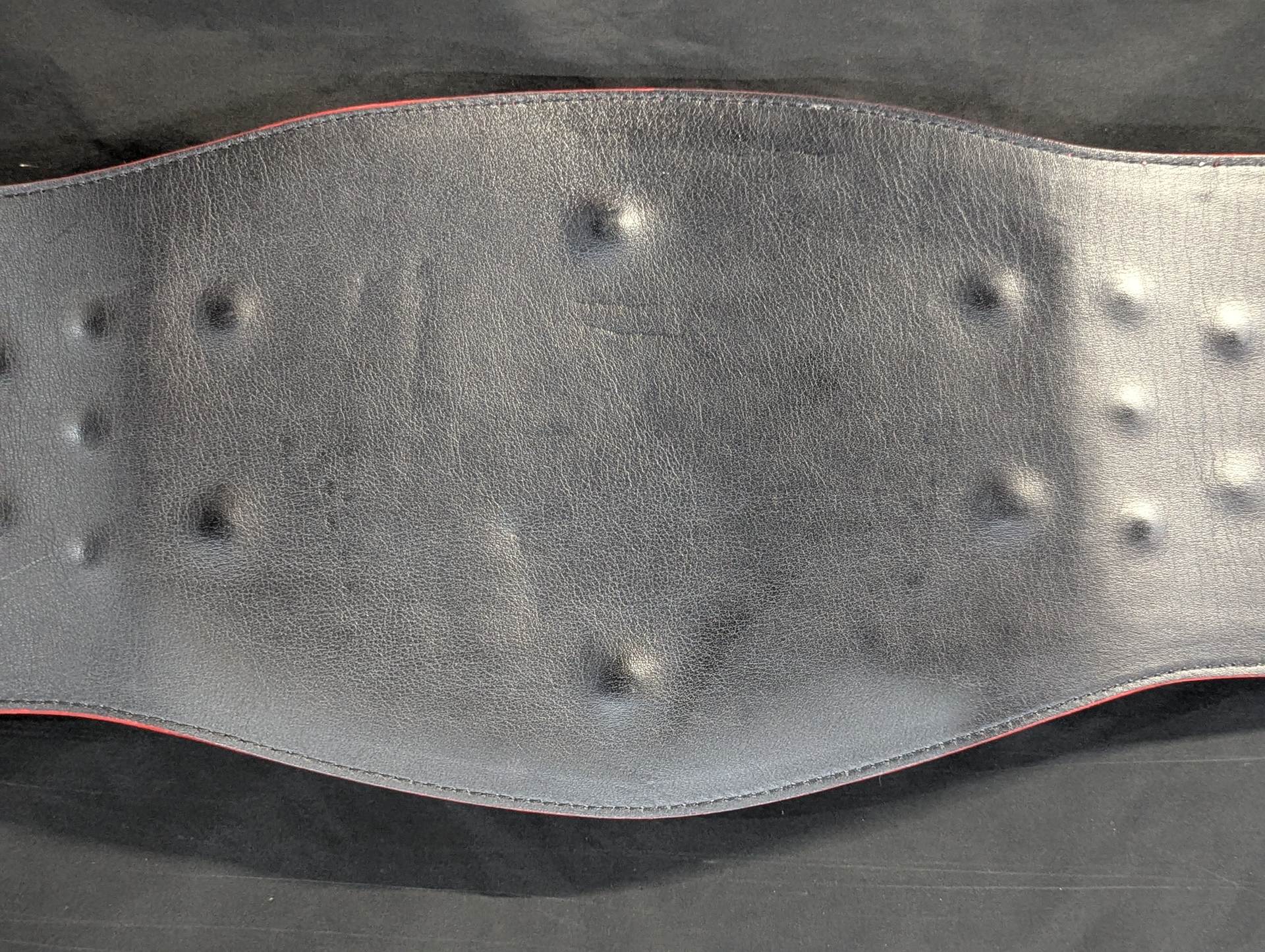 Size (126cm×20.5cm) Plate (Zinc Alloy, 5mm / Center Motif 1.5cm) Strap Material (Red Genuine Leather) Weight (2.7kg)