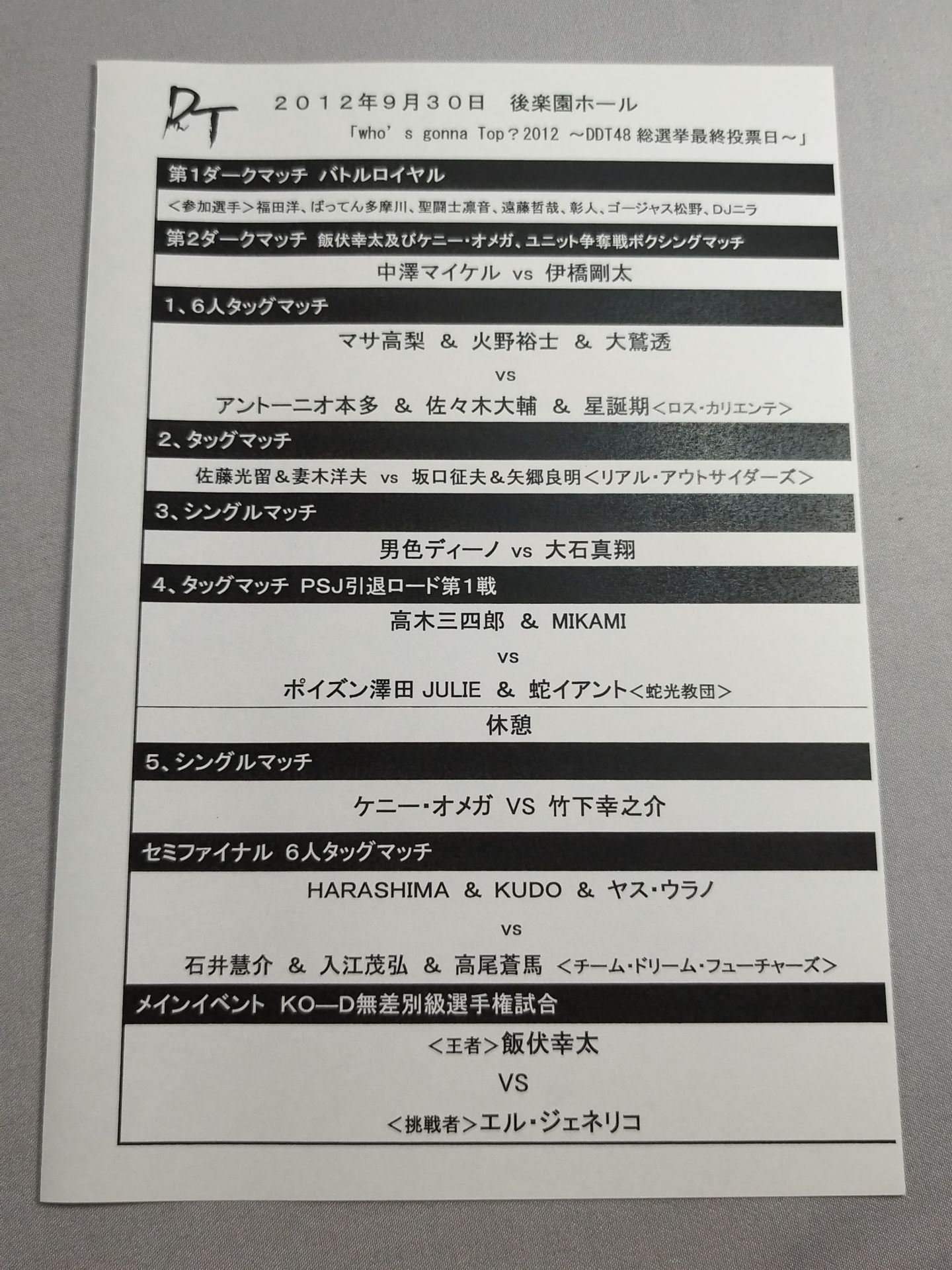 2012 Venue: Korakuen Hall / List of the matches on the separate sheet : [KO-D indiscriminate classFighters Match] Kota Ibushi vs El Genelico (Sami Zain)