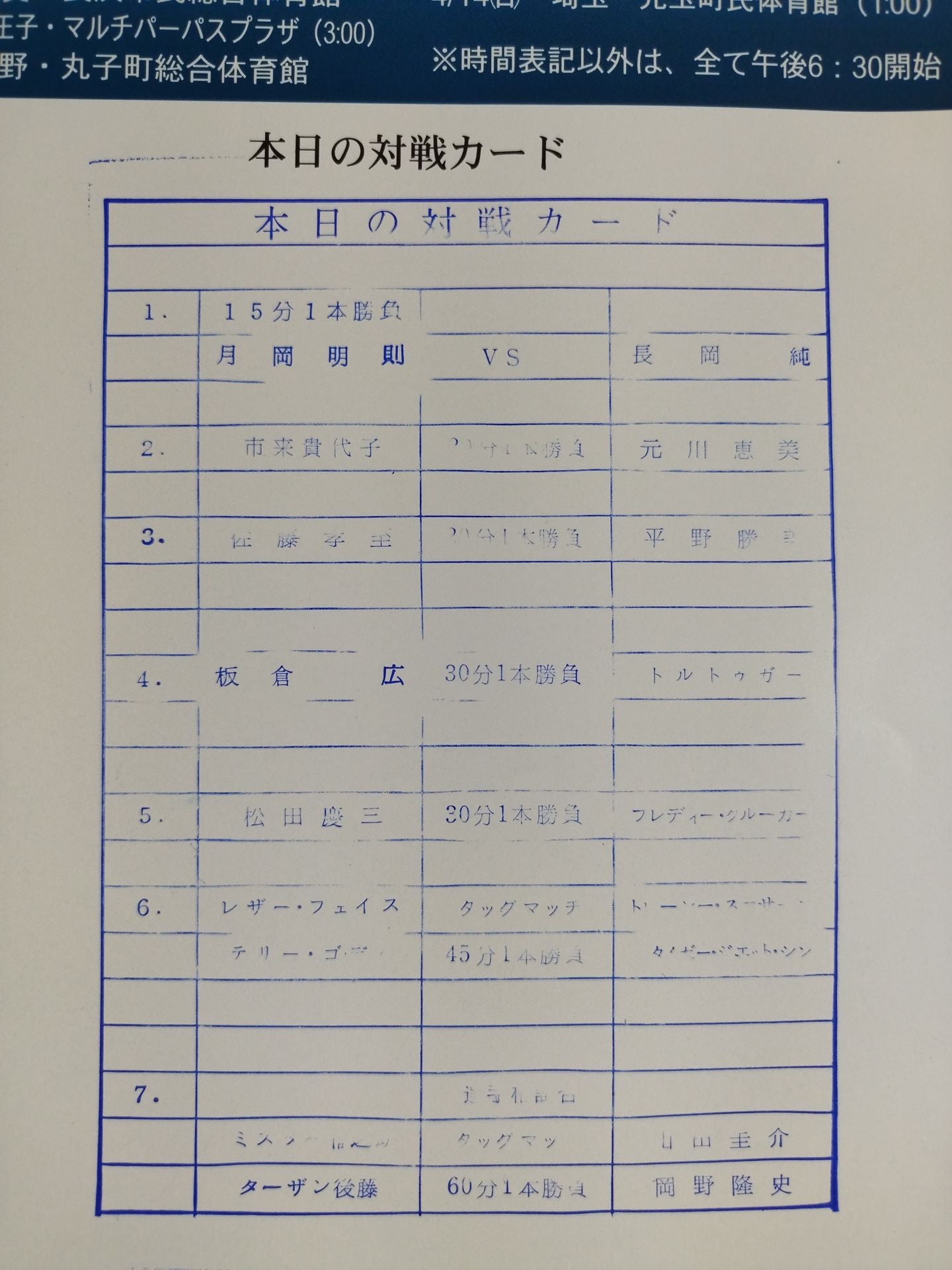 stamped with list of matches :Tarzan Goto & Mr. Gannosuke vs Takashi Okano & Keisuke Yamada