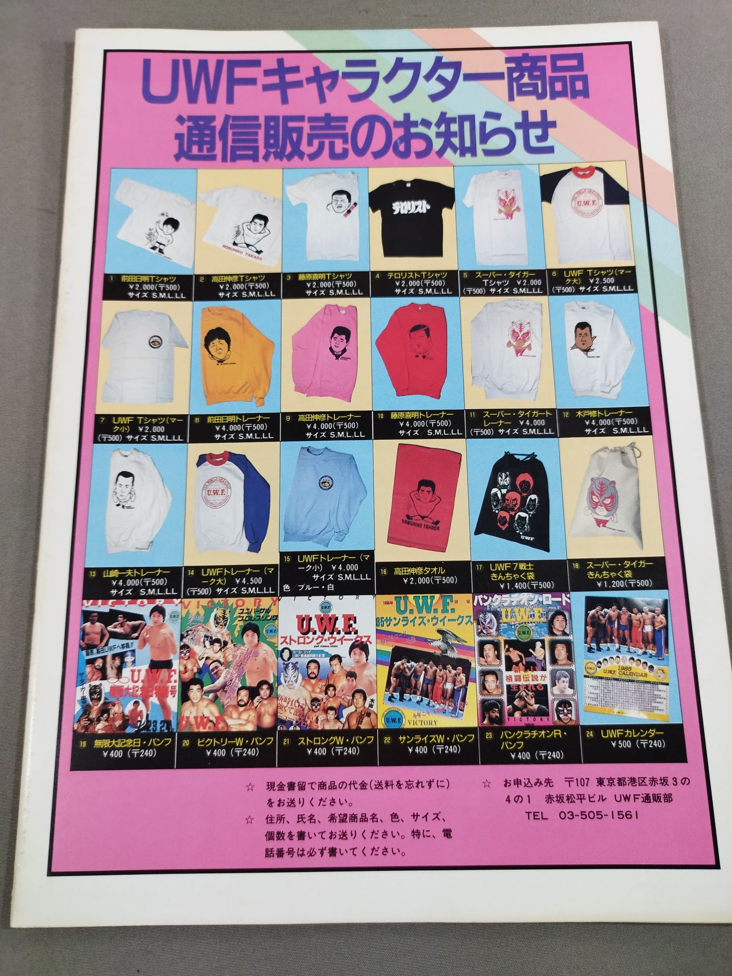 1985 Venue: Korakuen Hall / Stamped with list of matches : [Official League Match] Osamu Kido vs Akira Maeda / [League Match] Super Tiger vs Nobuhiko Takada Former UWF / Mat Revolution, Intense Progress!!